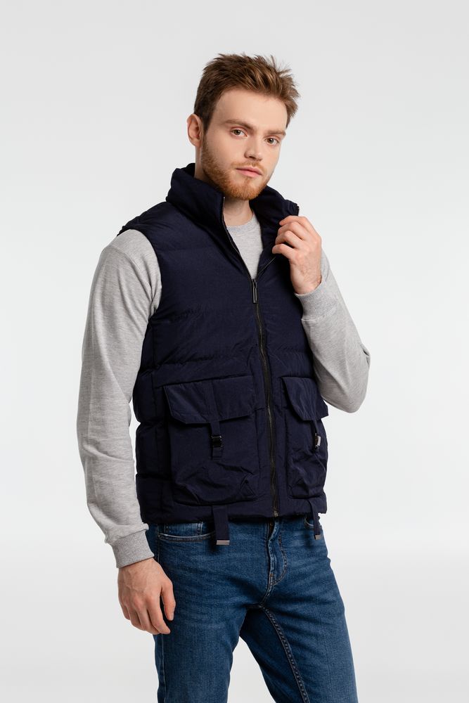 - Утепленный жилет на молнии с воротником стойкой и 2 наружными карманами