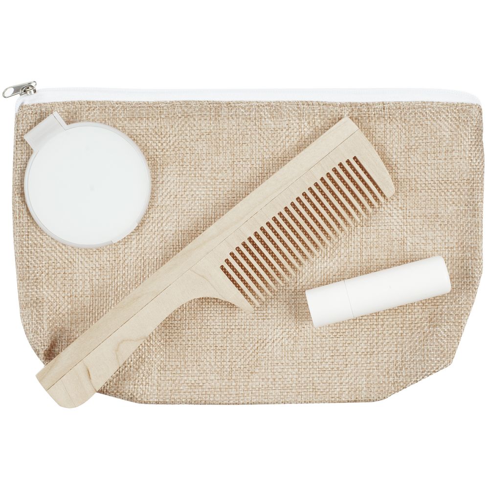 помада, зеркало - пластик; расческа - дерево; косметичка - полиэстер