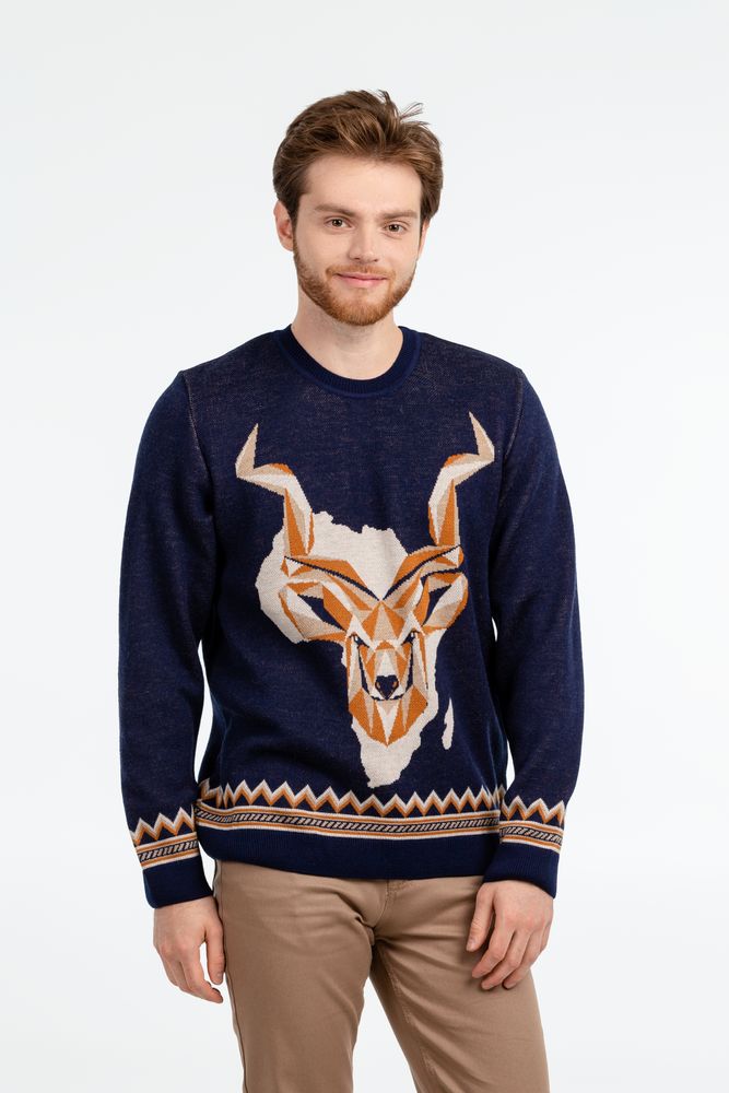 Джемпер с круглым вырезом и жаккардовым рисунком.