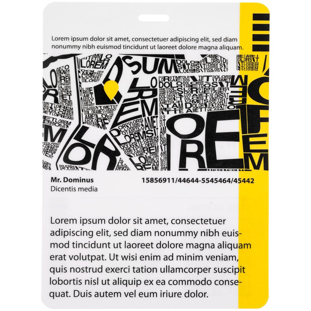 Яркое и четкое изображение печатается прямо на картоне с одной или двух сторон, а затем ламинируется — так бейдж становится более устойчивым к истиранию и воздействию влаги.