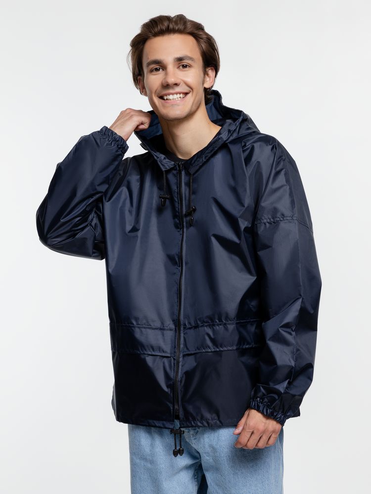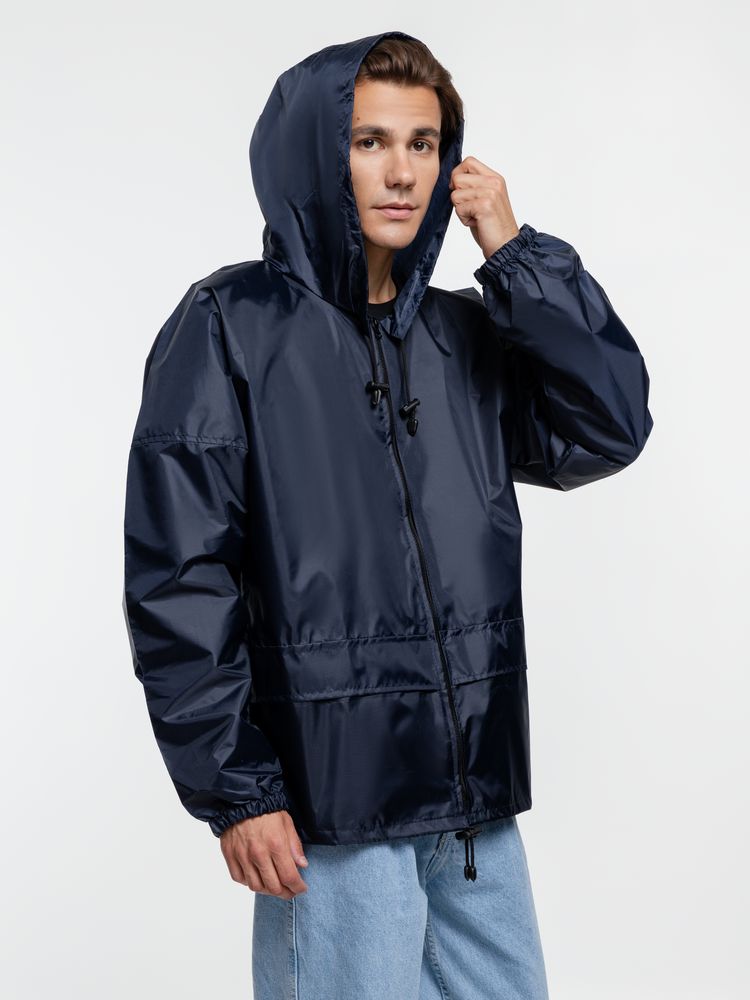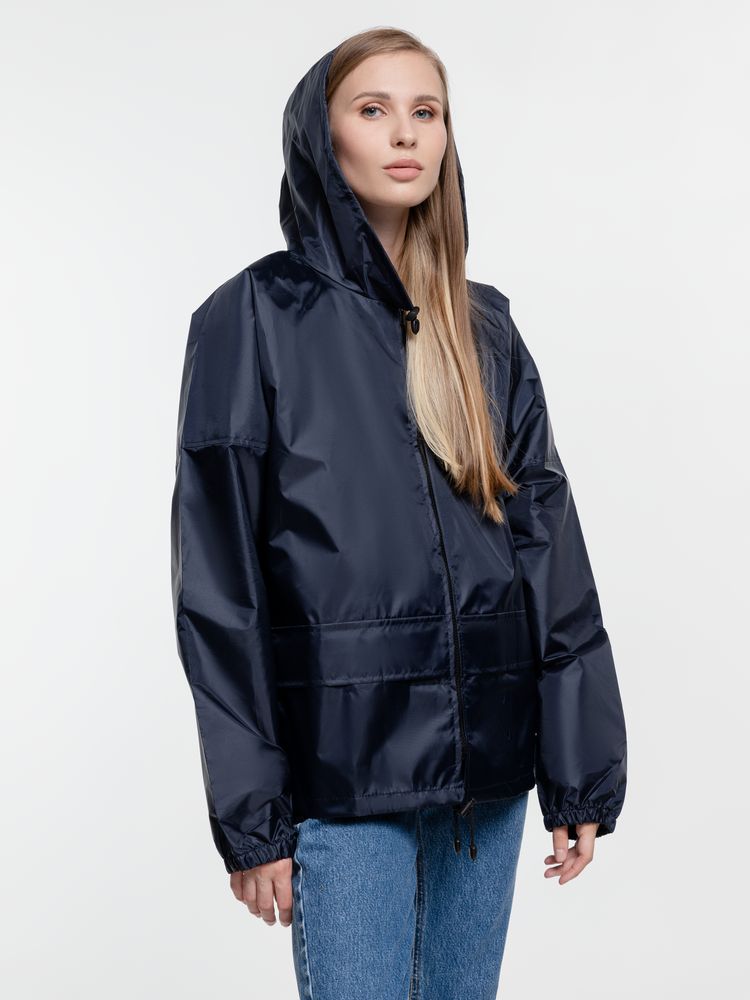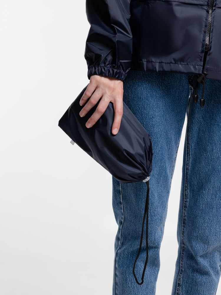 Укороченный дождевик свободного кроя из ткани таффета с влагозащитным покрытием. Складывается в мешочек — удобно брать с собой.