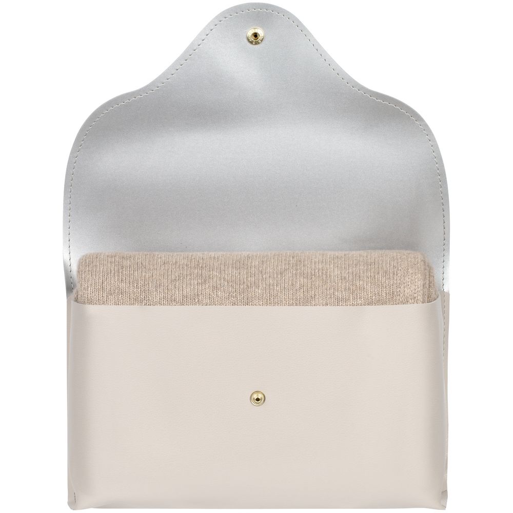 Благодаря кнопке плед можно аккуратно застегнуть посередине, полностью укутавшись в его теплые объятия. Элегантная упаковка-клатч добавляет пледу особого шарма — получается изысканный элитный деловой подарок.