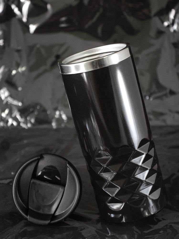 Покрытие кружки Prism напоминает глянцевую эмаль, — и рельефная поверхность корпуса дополнительно подчеркивается яркими бликами.