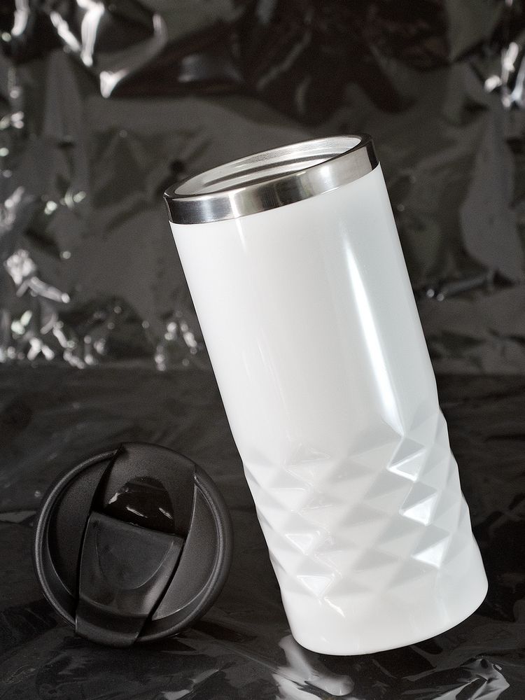 Покрытие кружки Prism напоминает глянцевую эмаль, — и рельефная поверхность корпуса дополнительно подчеркивается яркими бликами.