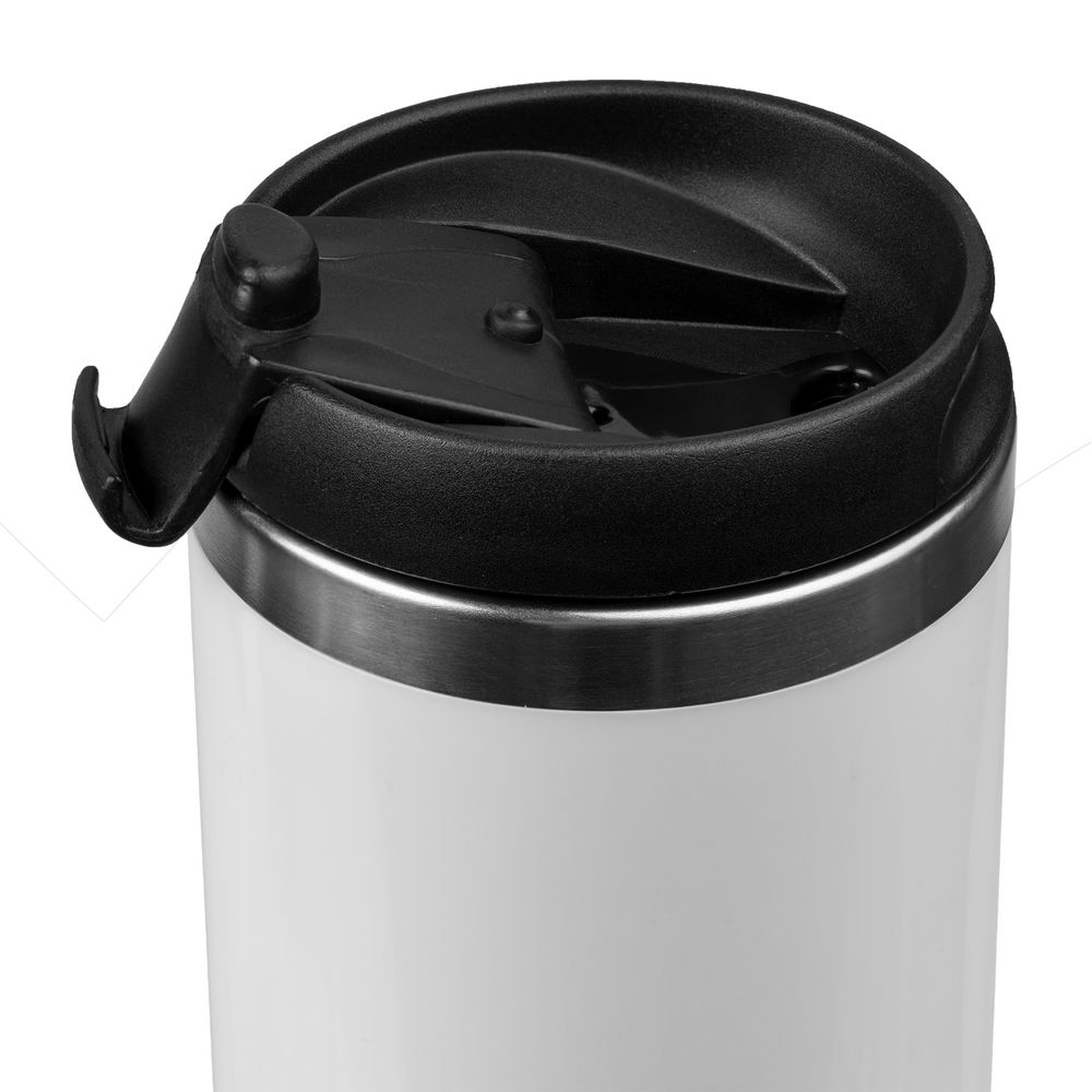 Двухслойная конструкция из пластика снаружи и пищевой нержавеющей стали внутри. Герметичная завинчивающаяся крышка с откидным клапаном для питья.