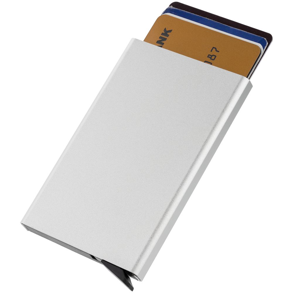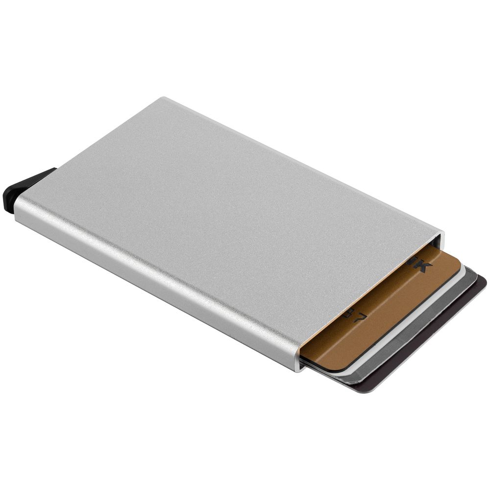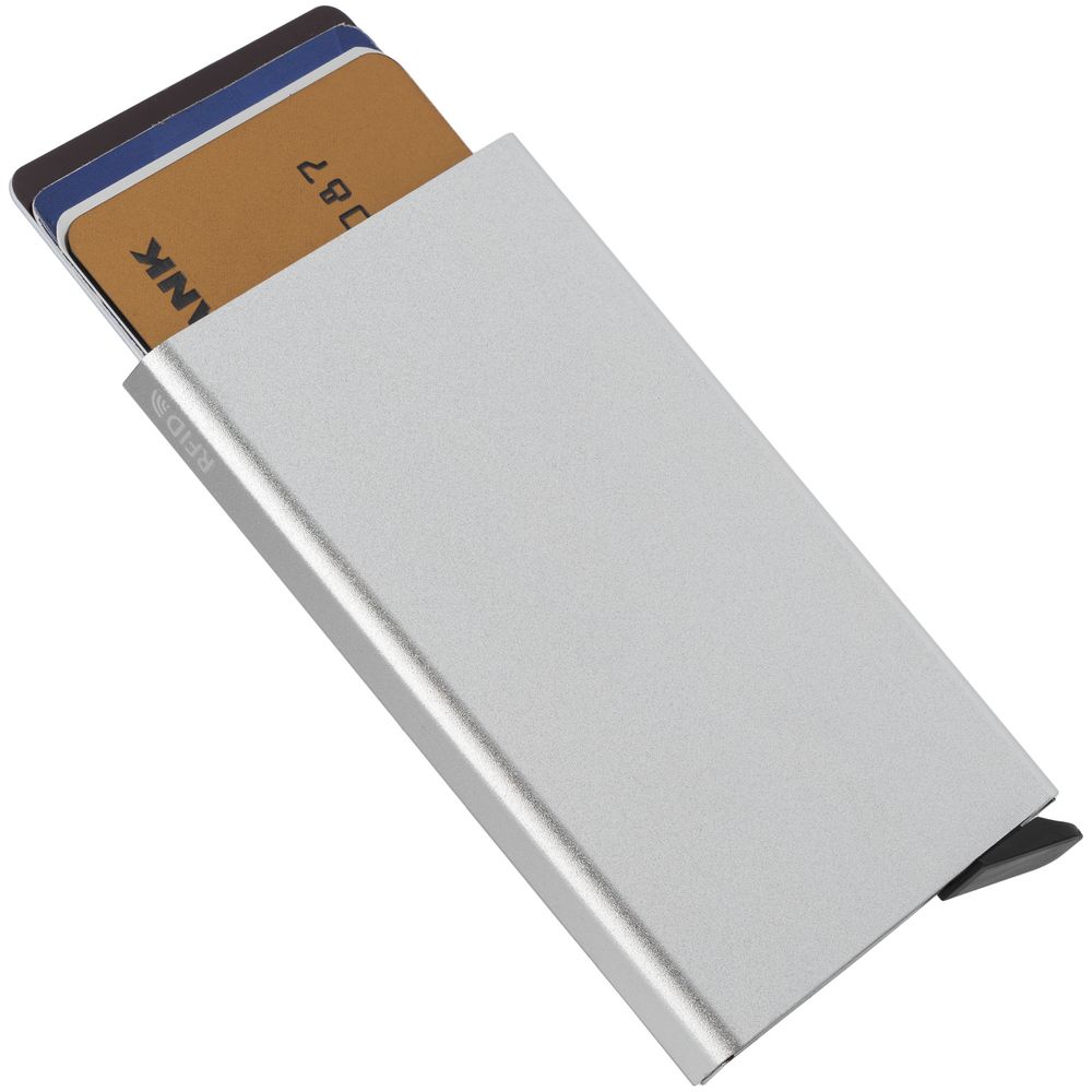 Футляр с выдвижным механизмом имеет защиту RFID. Вмещает 6 карточек.