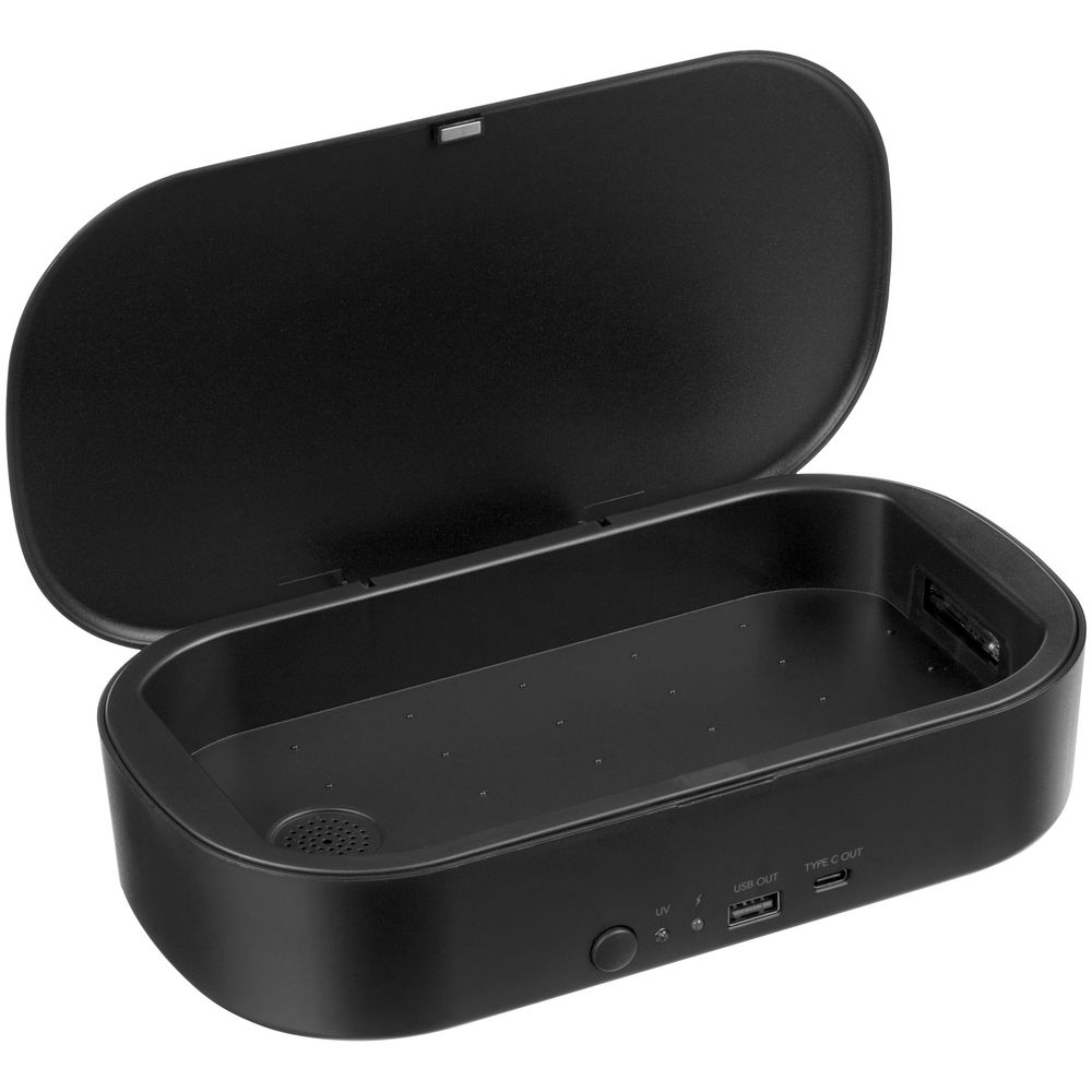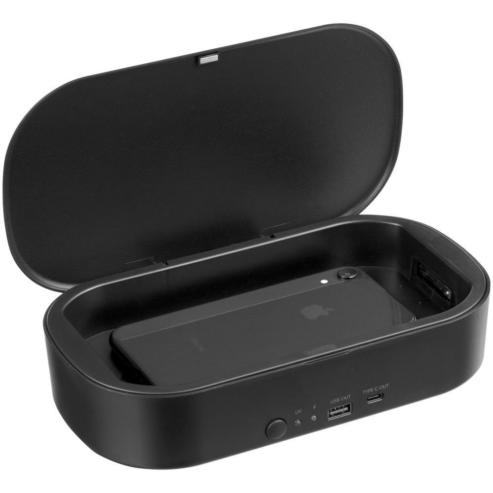 Функционал стерилизатора расширен функцией беспроводной зарядки для смартфонов. Смартфоны, не поддерживающие такой способ зарядки, могут заряжаться от USB-разъемов на передней панели.