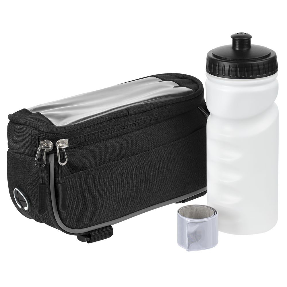 Набор Downhill предлагает все необходимое сразу: бутылку, из которой удобно пить на ходу, сумку для мелочей и светоотражатель, который можно закрепить на руке, ноге или рюкзаке.