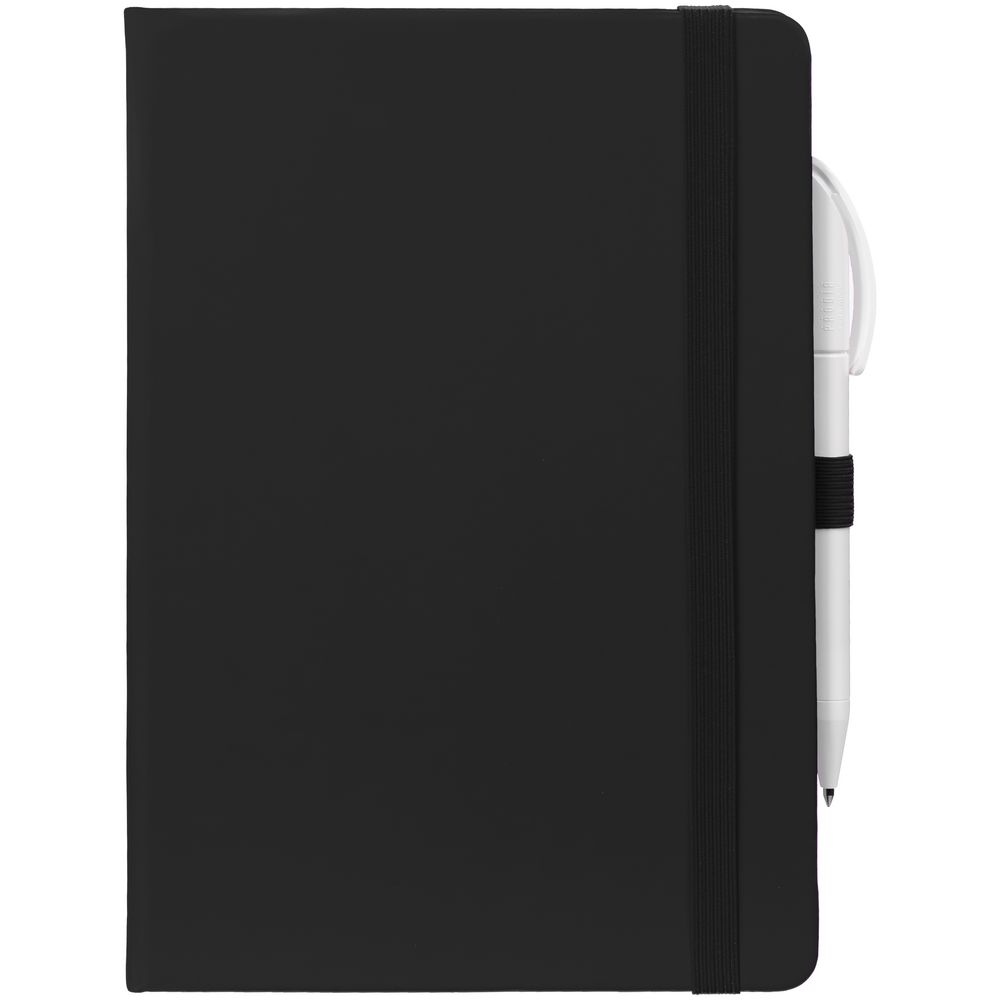 Блокнот в твердой обложке с антибактериальным покрытием, дополнен ляссе, резинкой и петлей-резинкой в цвет обложки.