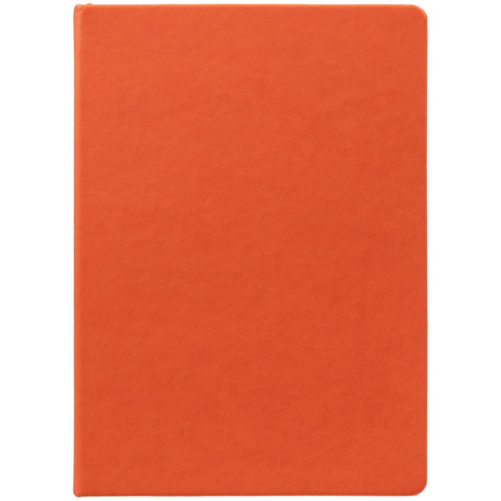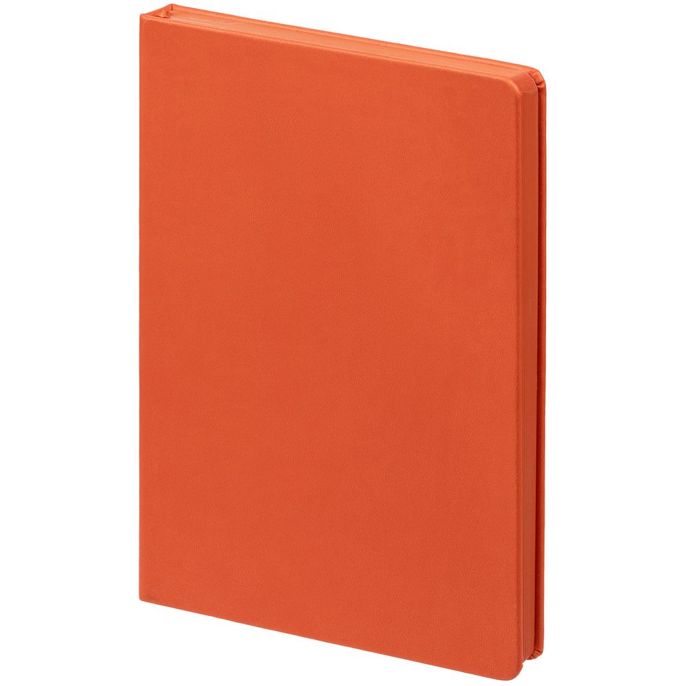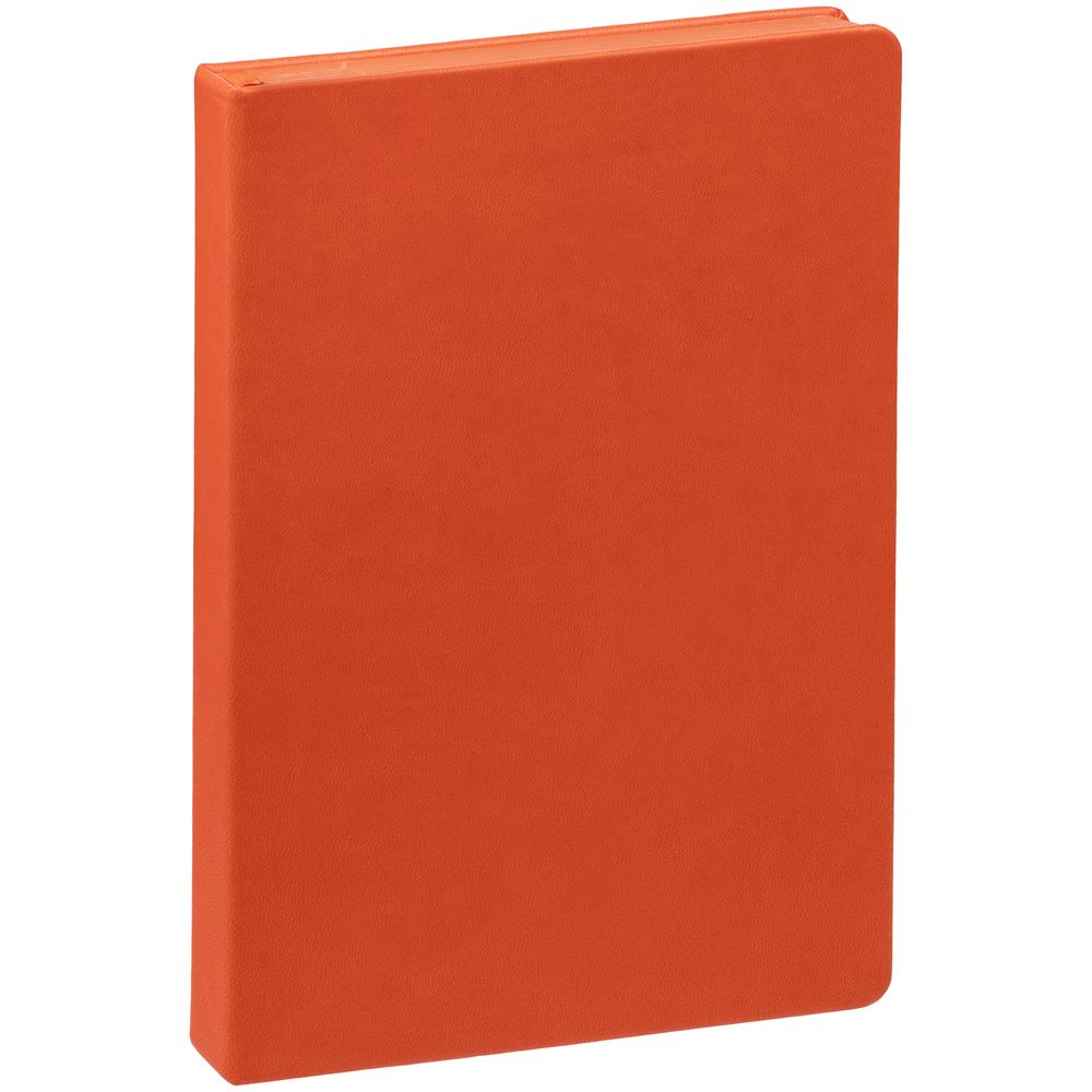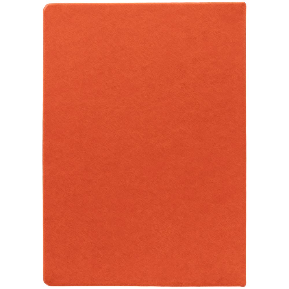 Ежедневник с твердой обложкой и тонированным обрезом. Выполнен из материала Latte, оранжевый, дополнен ляссе в цвет обложки.