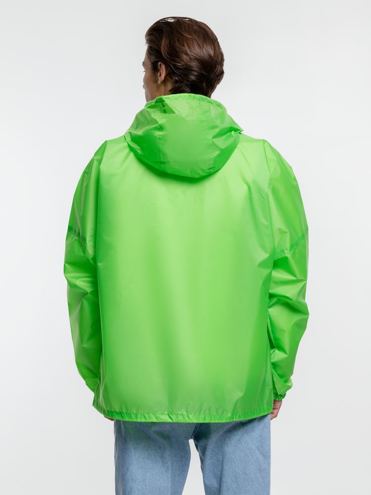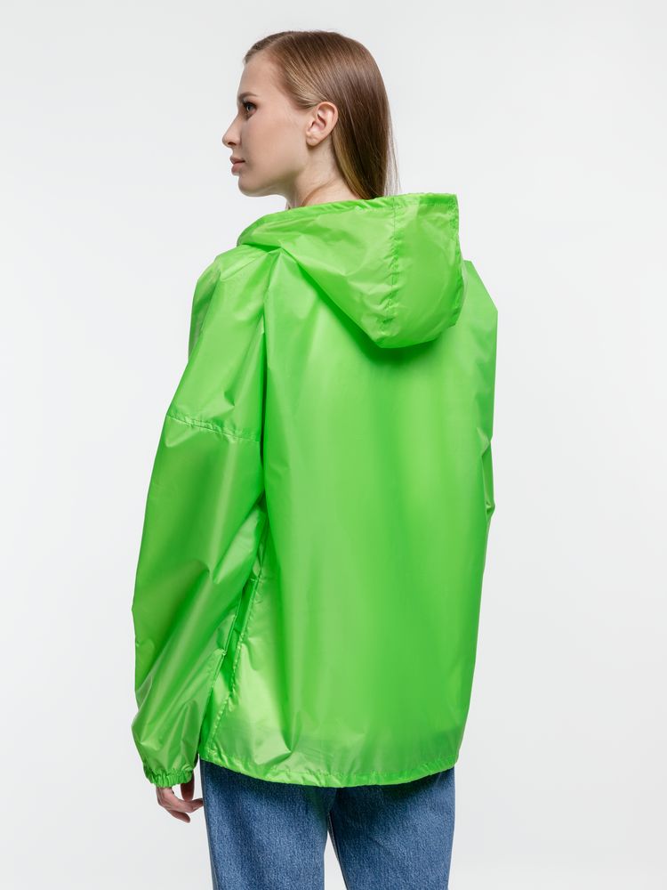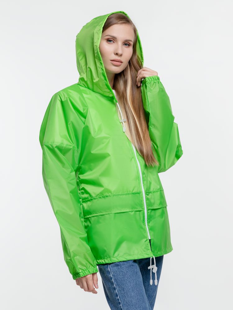 Укороченный дождевик свободного кроя из ткани таффета с влагозащитным покрытием. Складывается в мешочек — удобно брать с собой.