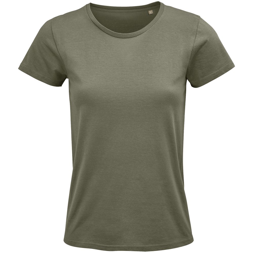 Женская бесшовная облегающая футболка из органического хлопка с круглым вырезом.