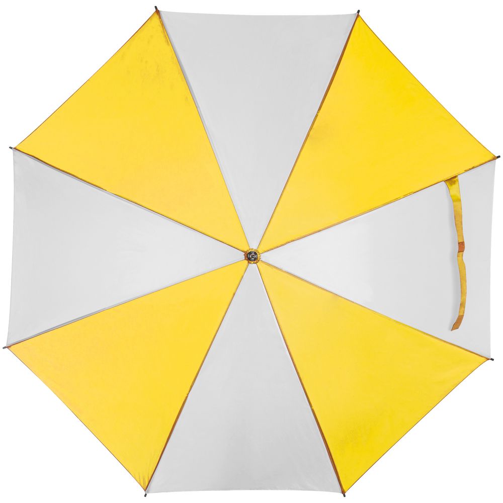 Двухцветный купол зонта Milkshake напомнит о пляже и музыкальном фургончике с мороженым, поможет с улыбкой переждать самый сильный ливень или укрыться от палящего солнца.