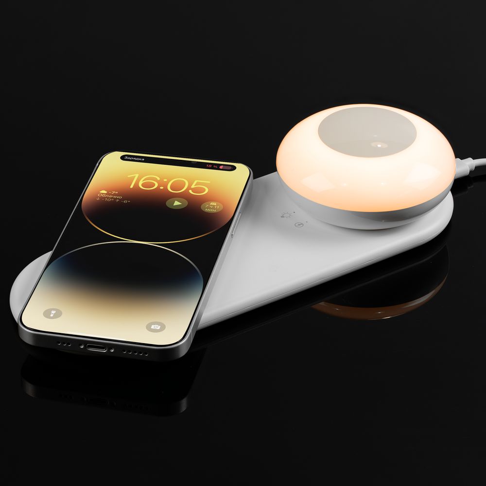 moonRay — многофункциональное устройство, которое сочетает в себе функции станции для беспроводной зарядки и ночника.