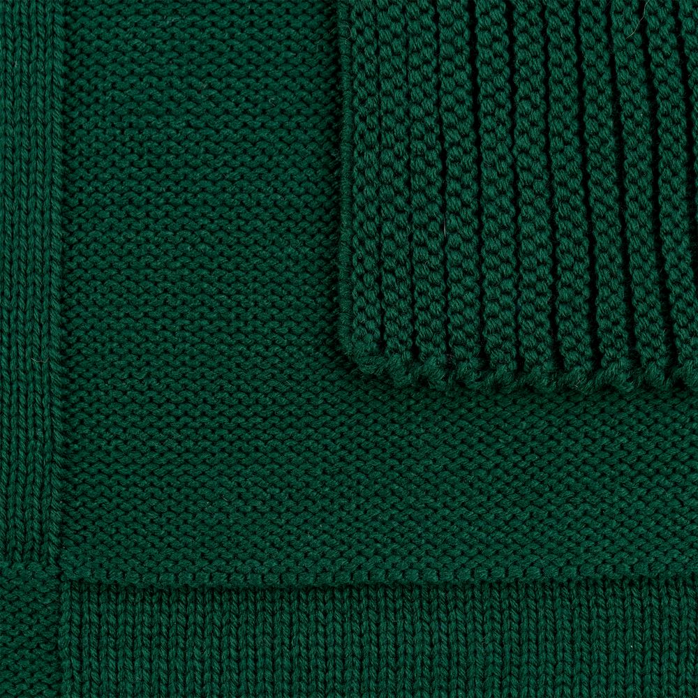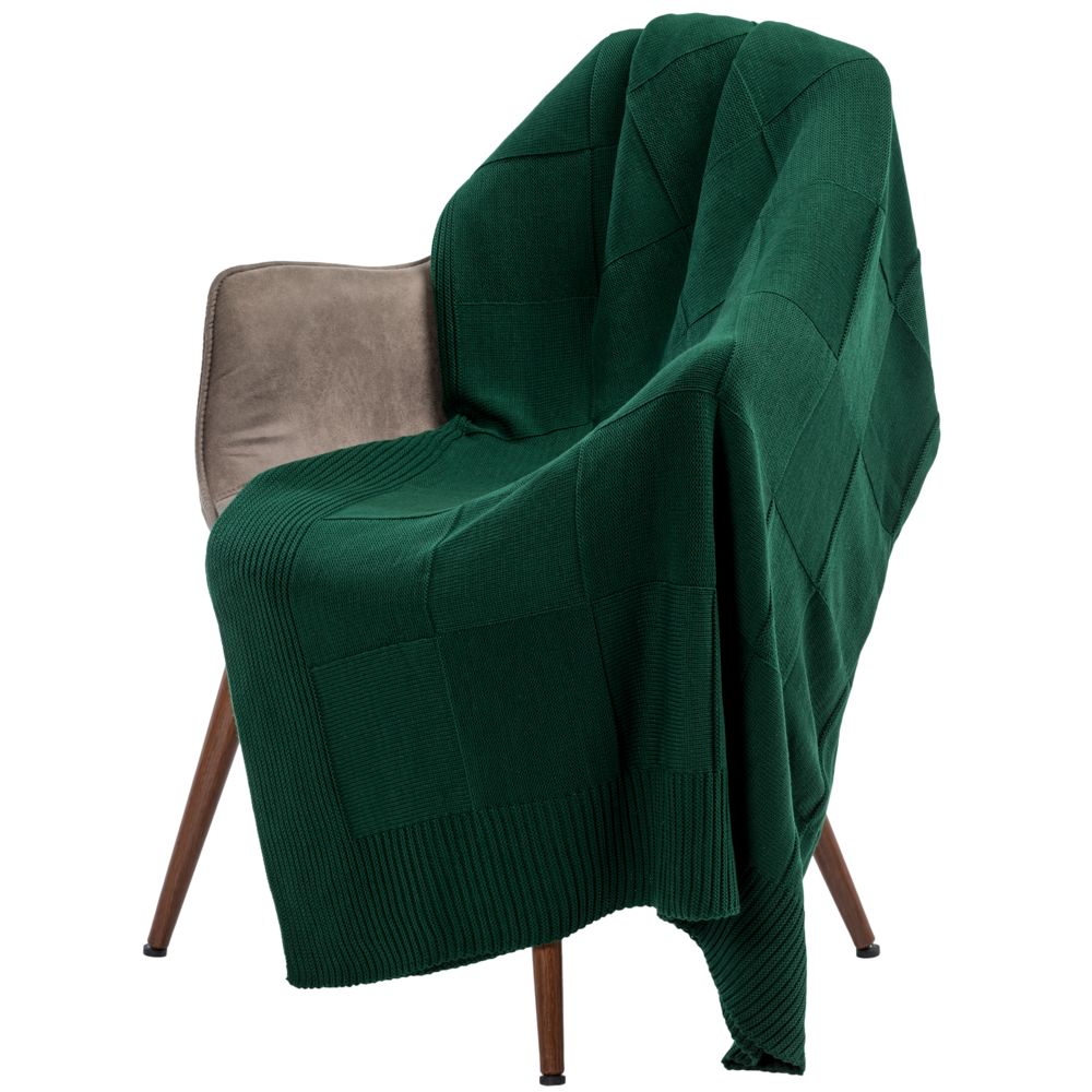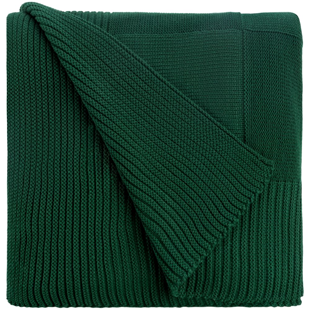 Однотонный плед рельефной вязки «в клеточку» с широким кантом, выполненным резинкой.