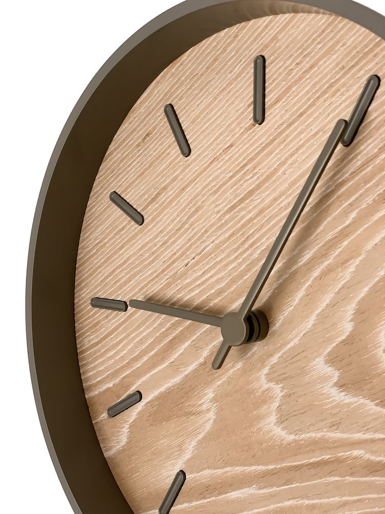 Рисунок дерева неповторим, поэтому настенные часы Nissa — это всегда уникальный природный узор в достойном обрамлении, позволяющем любоваться текстурой натурального материала.