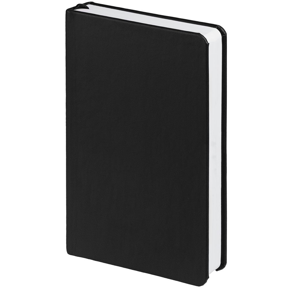 Блокнот с твердой обложкой, выполнен из материала Latte, черного цвета, дополнен ляссе в цвет обложки.