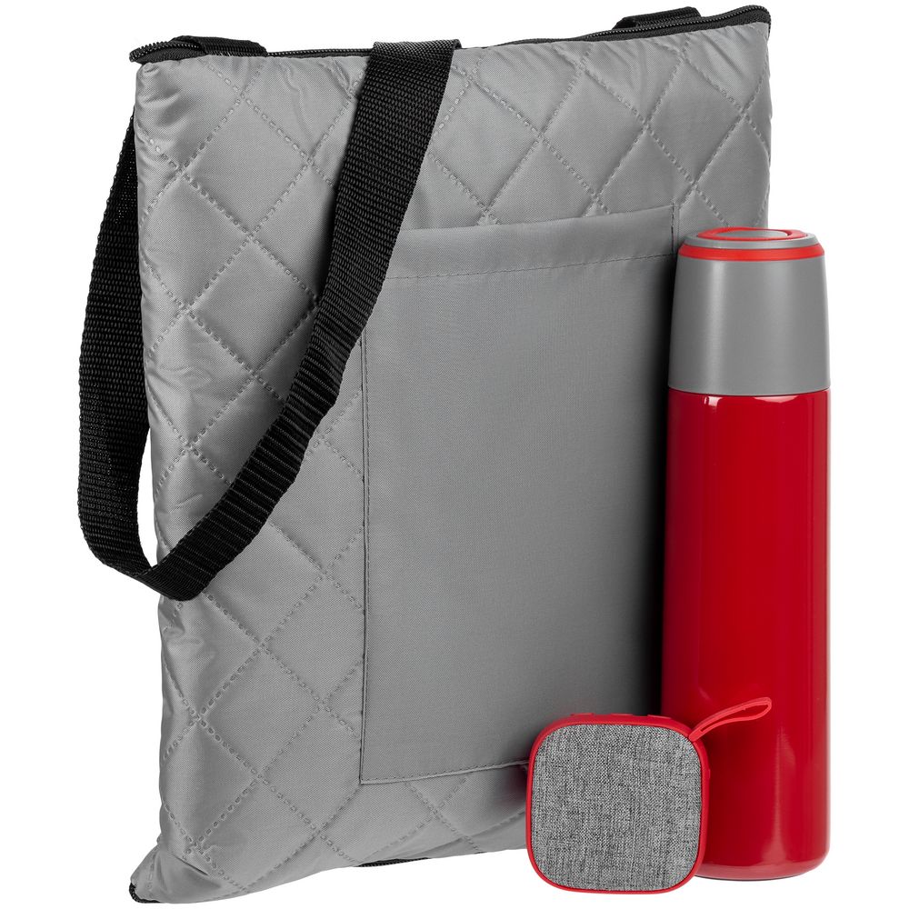 колонка - пластик, покрытие софт-тач; термос - металл, пластик; плед - полиэстер