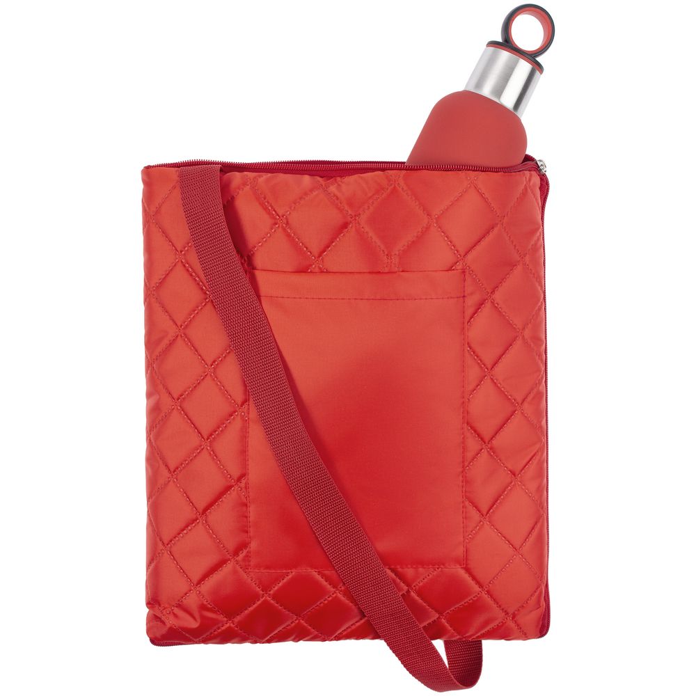 Наполните бутылку водой, положите сэндвич и книжку прямо в сумку, а потом легким движением руки превратите ее в удобный непромокаемый плед, который позволит с комфортом расположиться на земле даже после дождя.