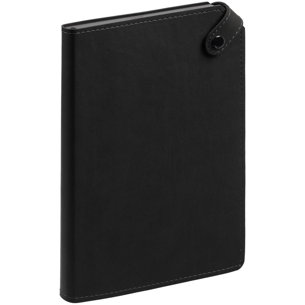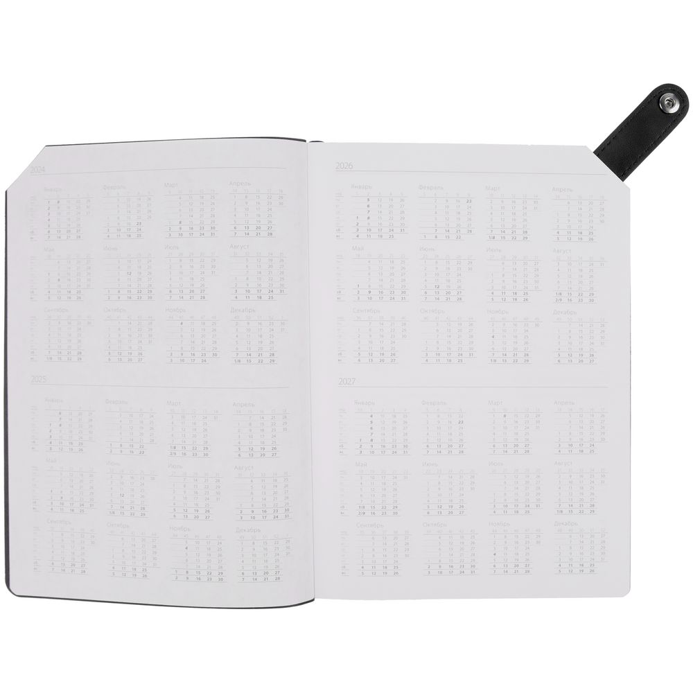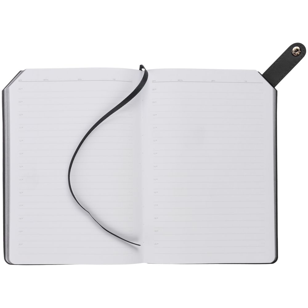 Ежедневник с гибкой обложкой и тонированным обрезом. Выполнен из материала Latte, черный АА, дополнен черным ляссе.