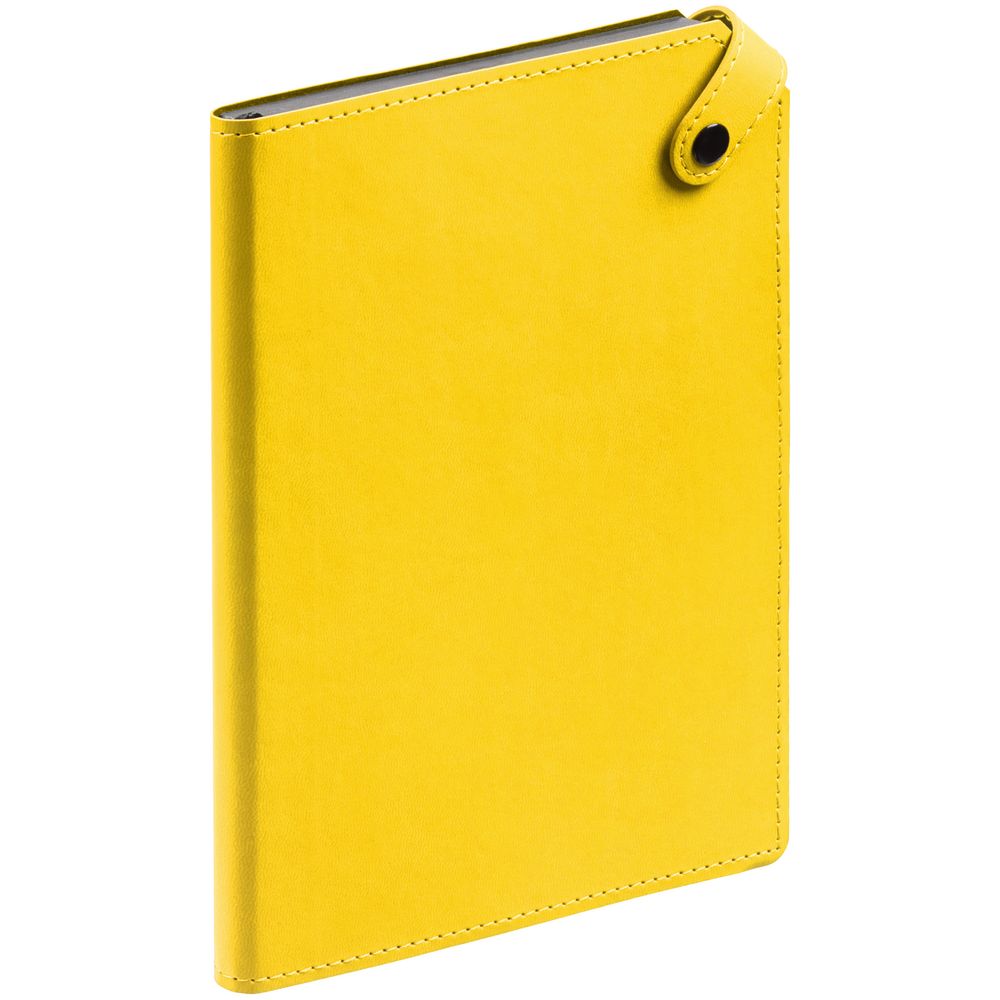 Ежедневник с гибкой обложкой и черным обрезом. Выполнен из материала Latte, желтый КК, дополнен ляссе черного цвета.