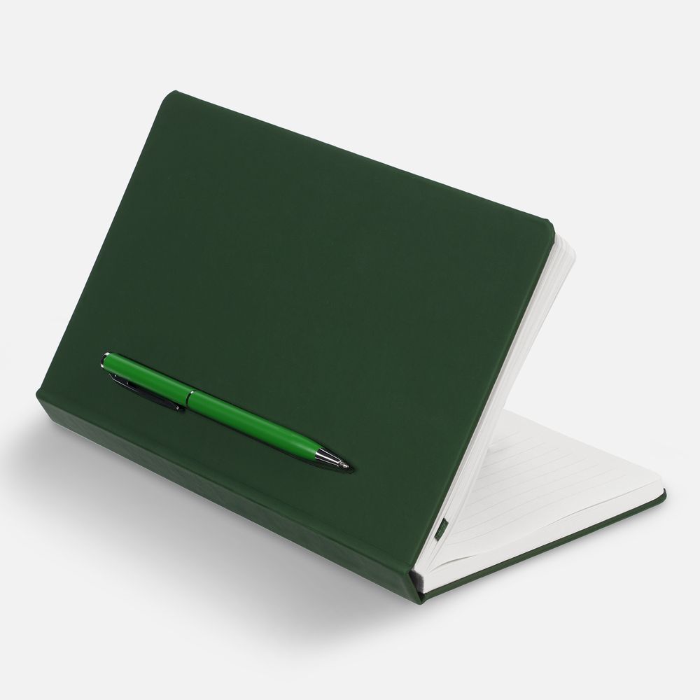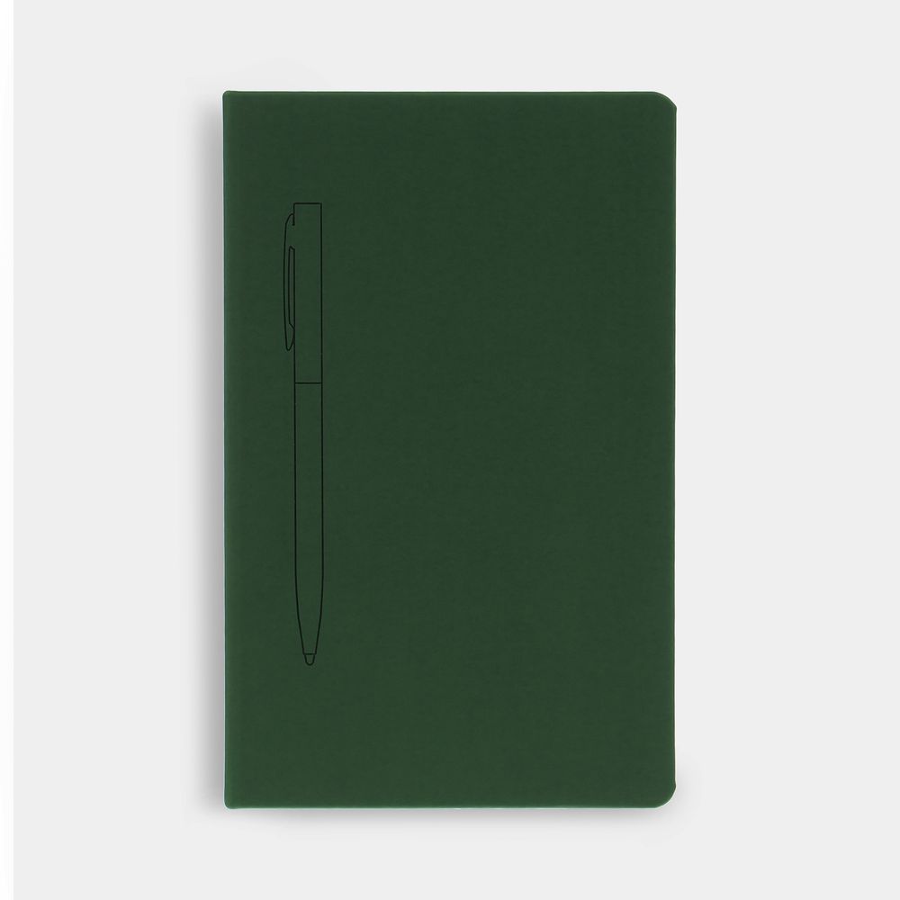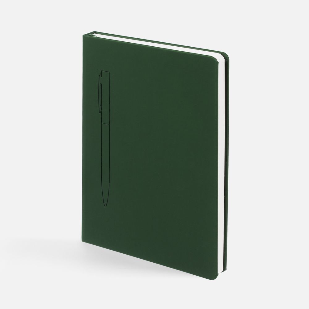 Ежедневник в твердой обложке, выполненной из материала Soft Touch, зеленый FF, дополнен цветным ляссе и магнитом, удерживающим ручку.