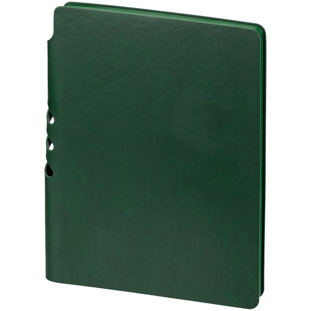 Гибкая обложка ежедневника выполнена из материала Latte, зеленый FF. Внутри корешка — специальное место для крепления ручки размером до 15х0,9 см.