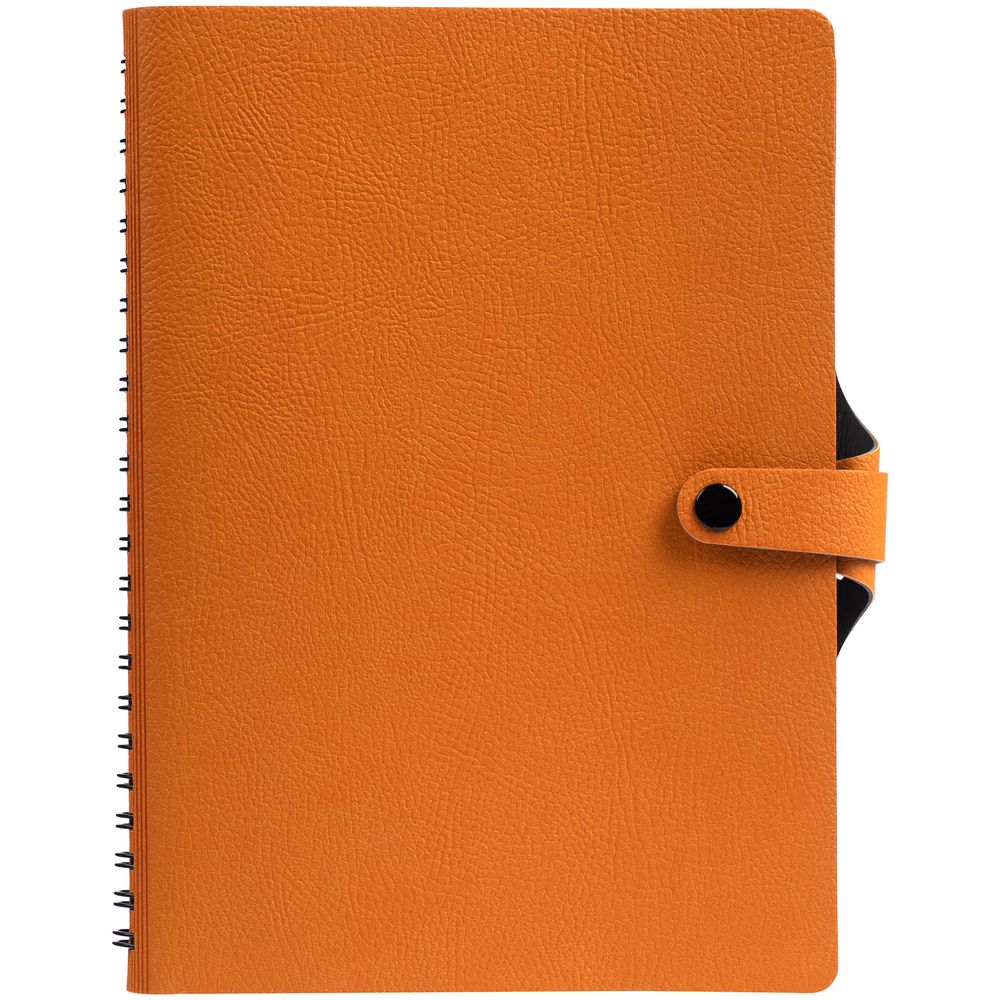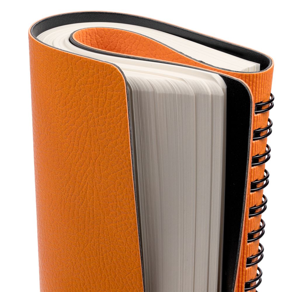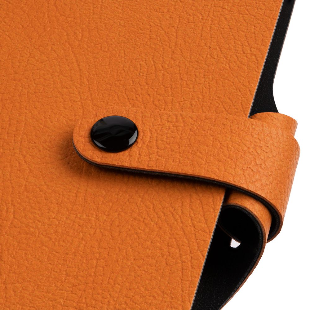 Ежедневник с гибкой обложкой, выполнен из материалов Charme, оранжевый ОО и Waltz черный АА.