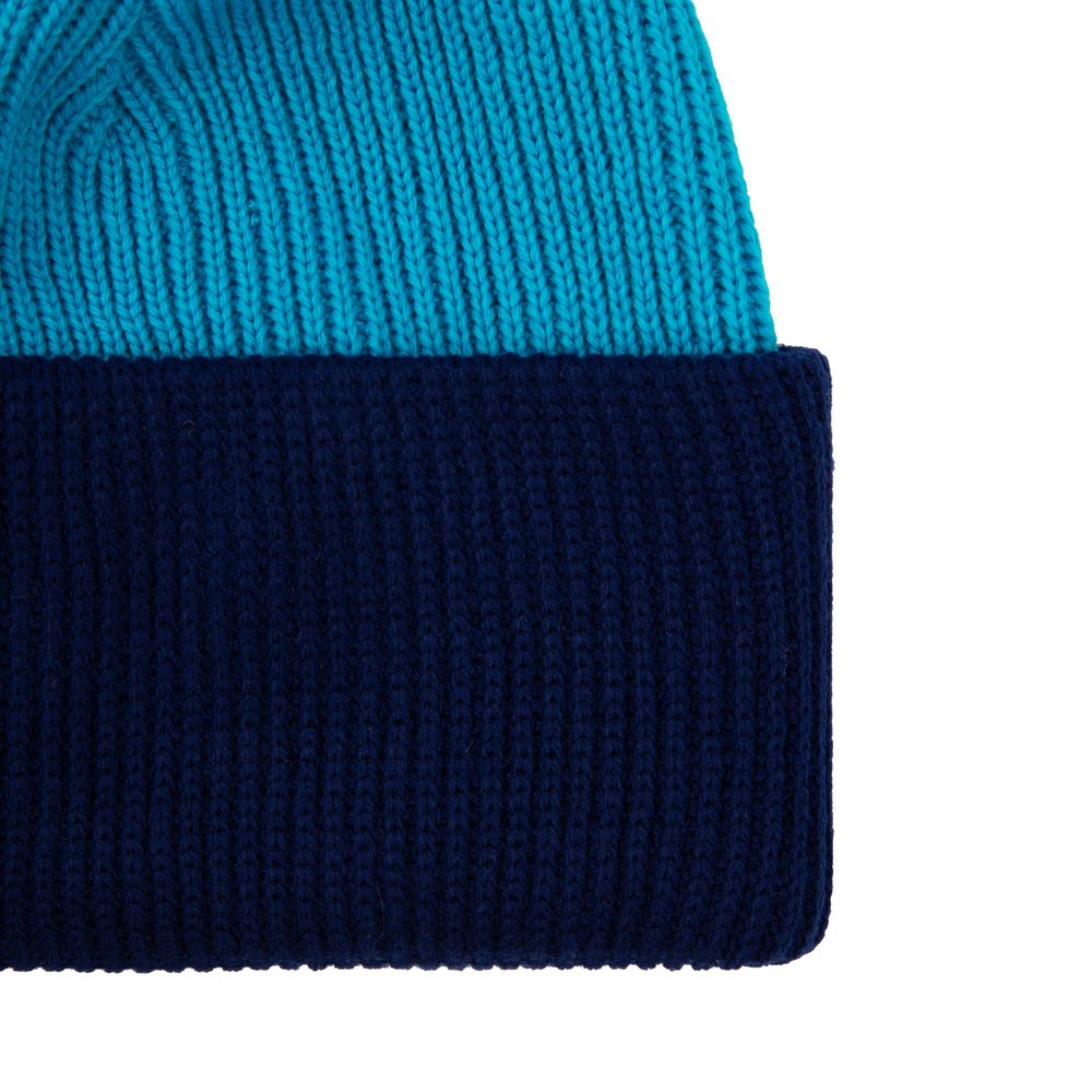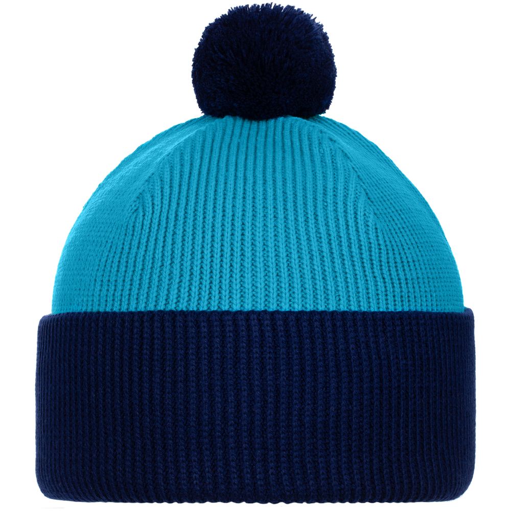 Двуслойная шапка фактурной вязки с контрастным подворотом и помпоном.