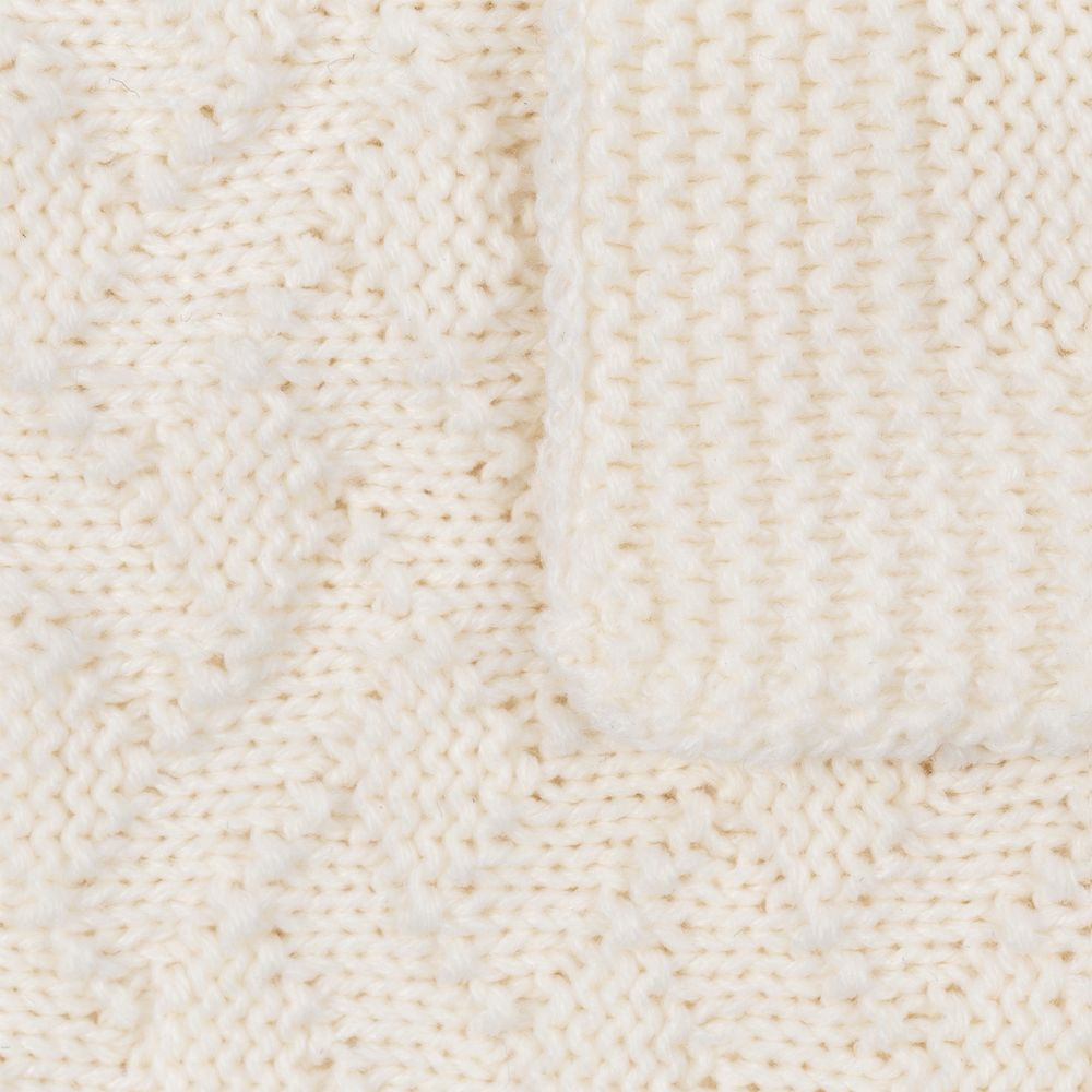 Плед фактурной вязки с орнаментом в стиле пэчворк — не совсем отдельные лоскутки, но гармоничное сочетание разных узоров.