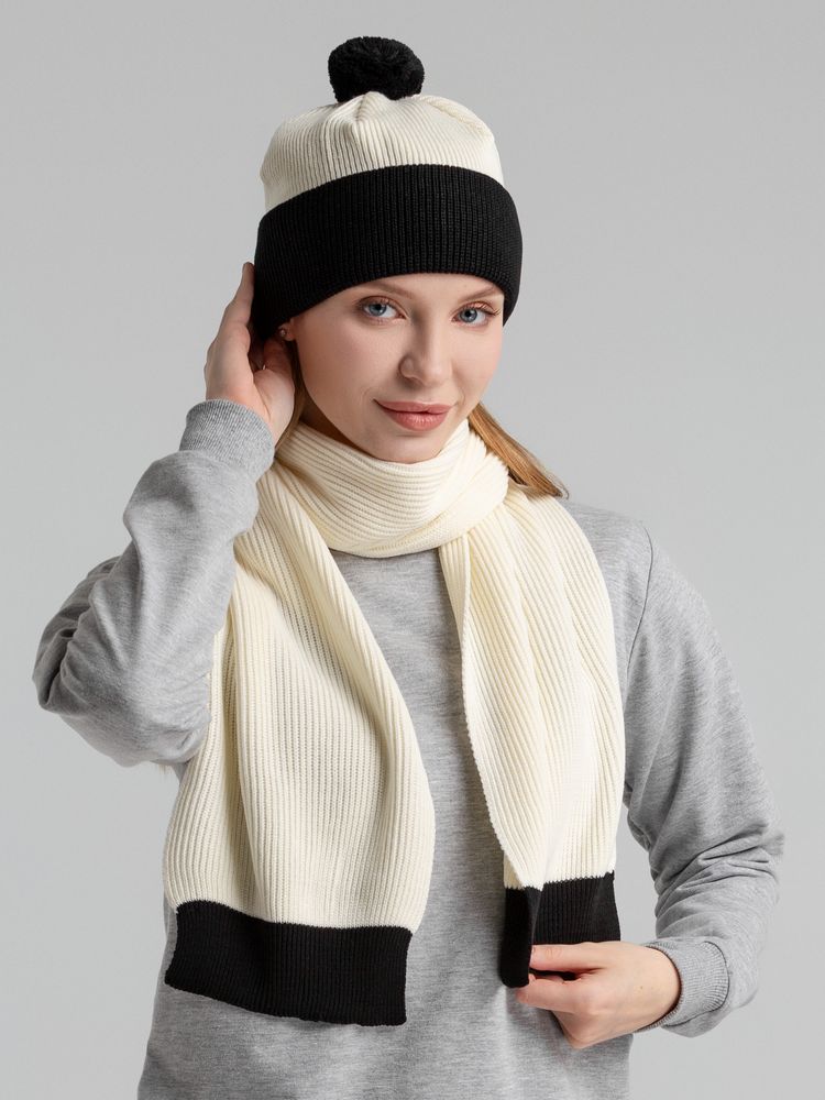Двухслойный шарф фактурной вязки с контрастной отделкой.