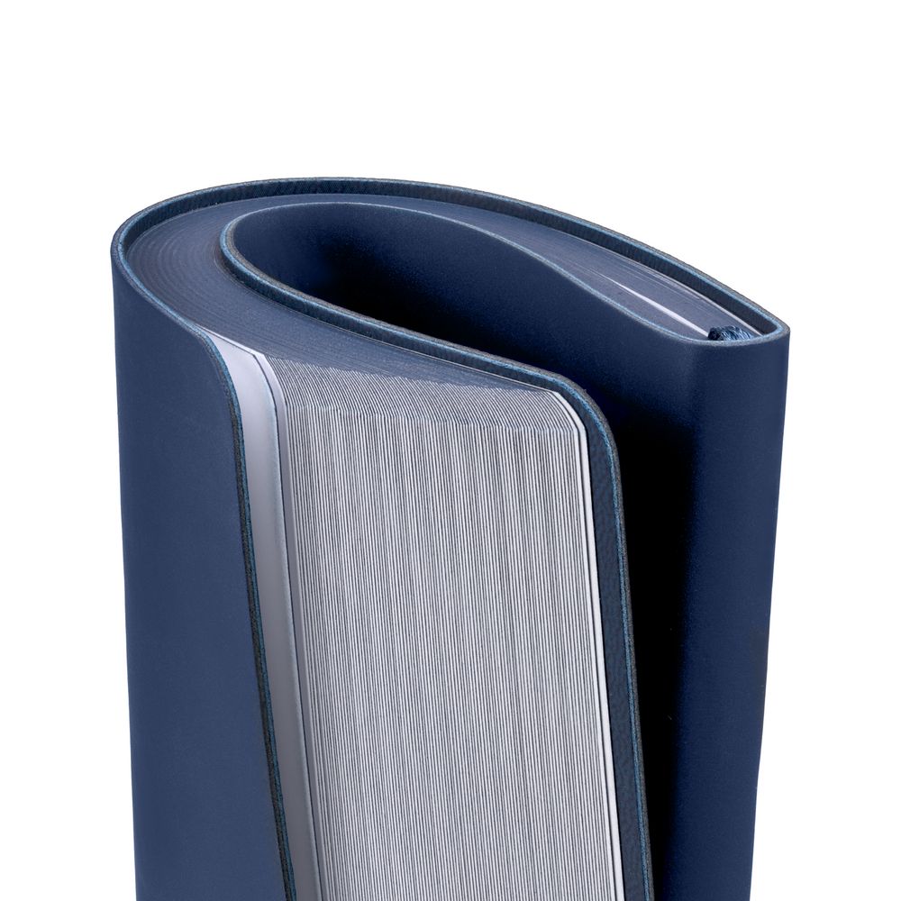 Блокнот с гибкой обложкой, выполнен из материала Soft Touch Pearl, синий НН и Latte, темно-синий ХХ (внутренний материал).