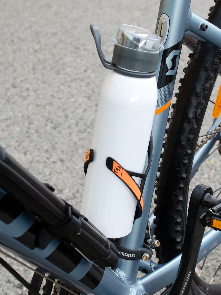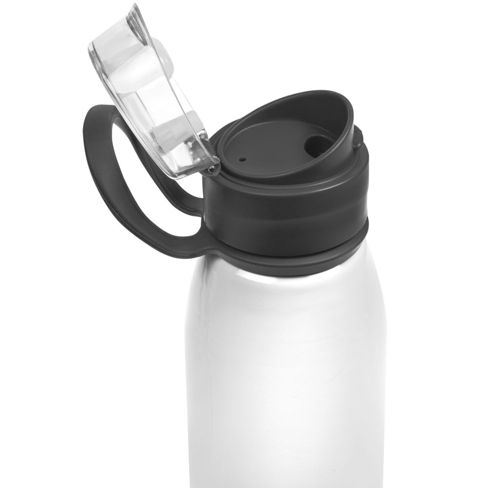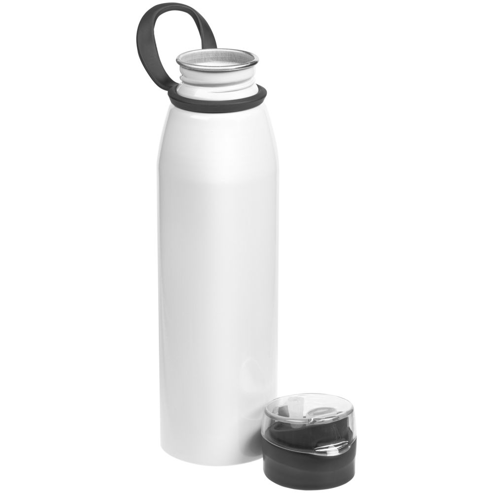 Легкая бутылка для спорта с откидной крышкой и силиконовой петлей для транспортировки.