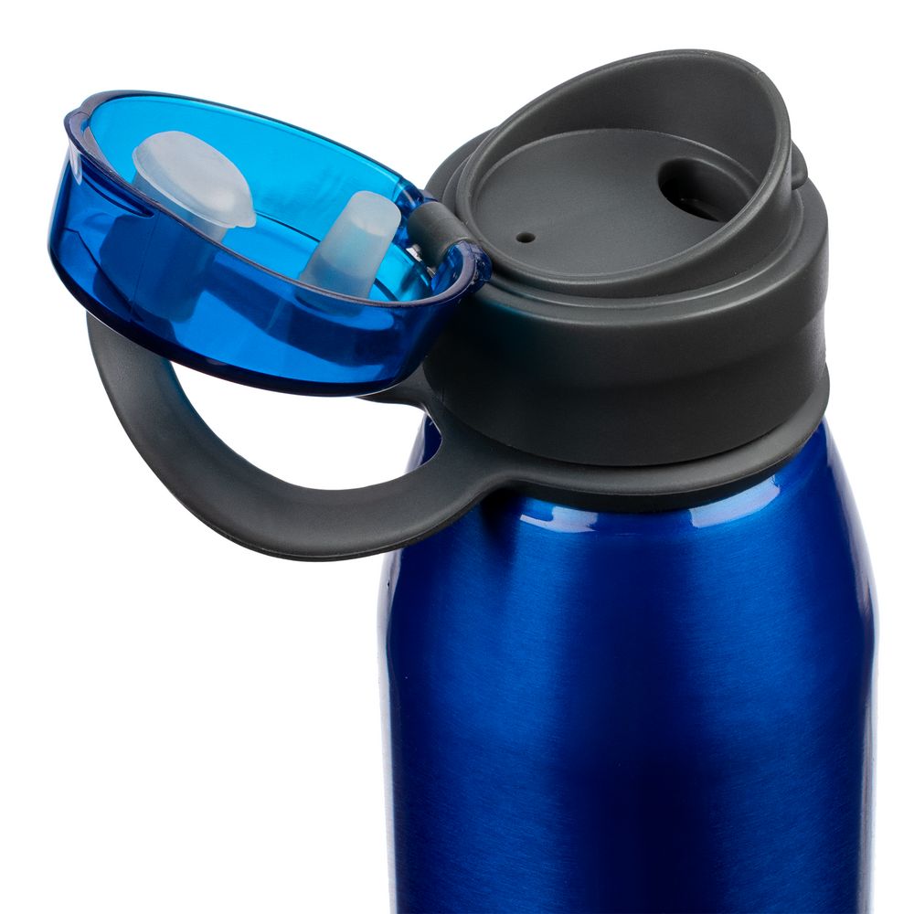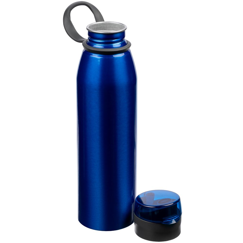 Легкая бутылка для спорта с откидной крышкой и силиконовой петлей для транспортировки.