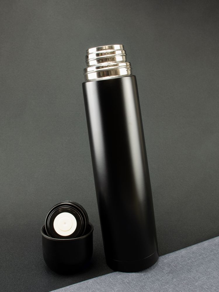 Двухслойная вакуумная конструкция из нержавеющей стали с завинчивающейся пробкой с клапаном.