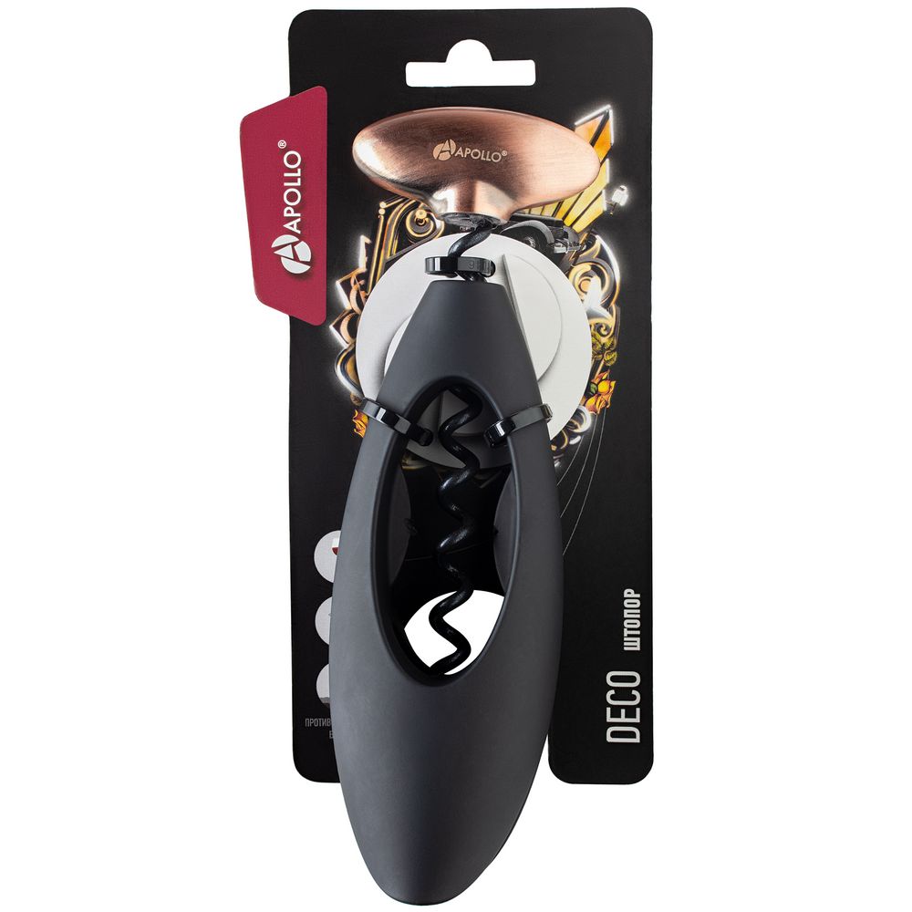 С помощью штопора Deco вы легко сможете вытащить пробку из бутылки. Пластиковая рукоятка штопора имеет специальное покрытие, которое приятно на ощупь и не позволяет изделию выскальзывать из руки во время использования.Удалите фольгу с горлышка бутылки, поместите пластиковую часть штопора на горлышко и сожмите. Заведите спираль штопора в пластиковую часть сверху и, вращая по часовой стрелке, вытащите пробку.