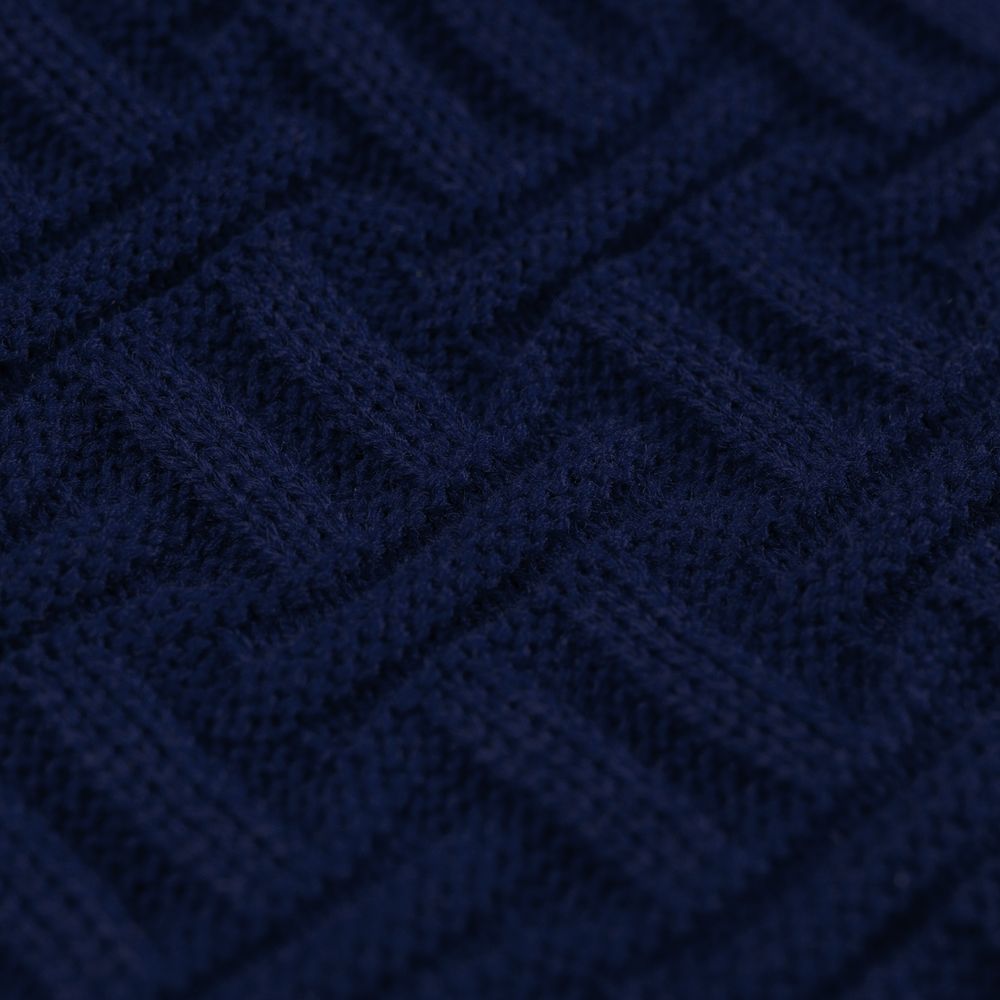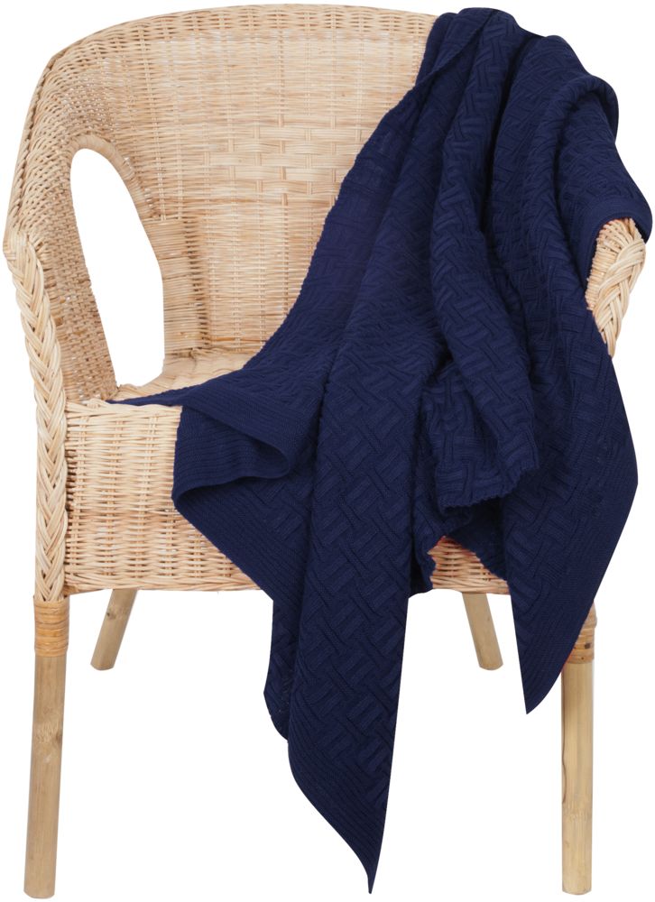 Модель: однотонный плед с фактурной вязкой, которая позволяет сделать его воздушным и объемным. Чередуя различные типы петель на гладком полотне, можно вывязать любую графику — логотип, текст, товарный знак.
