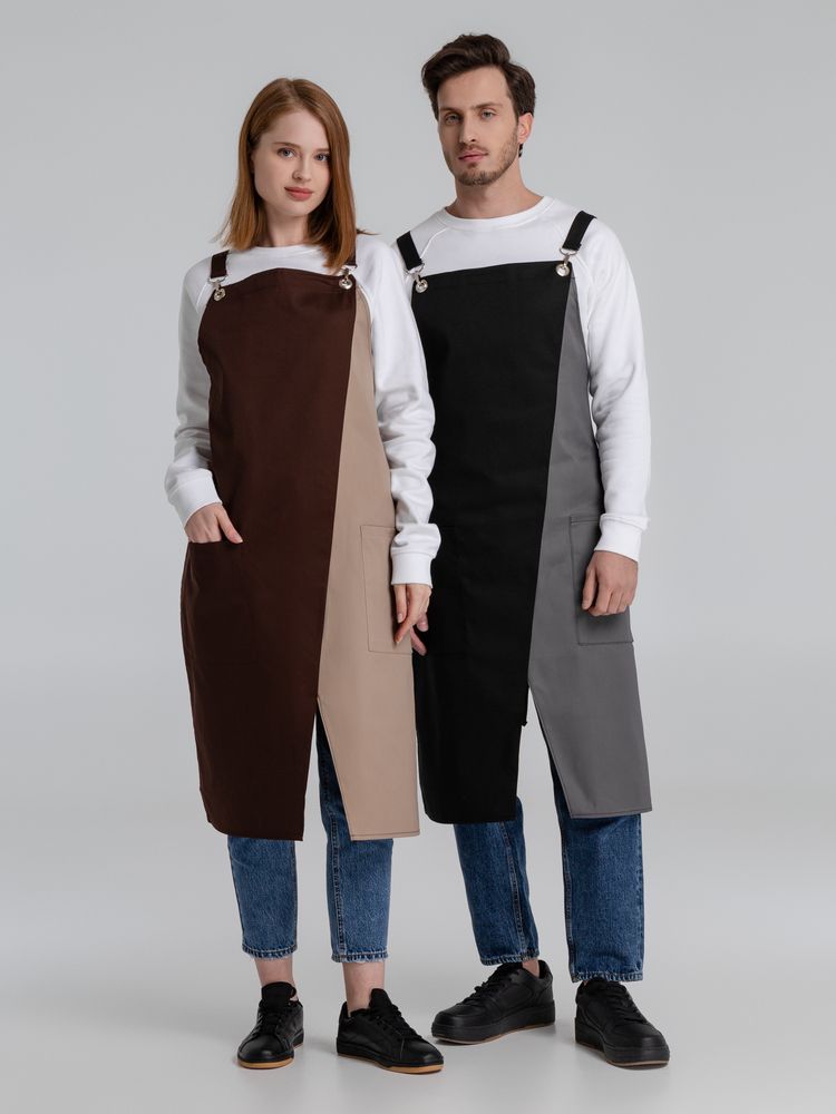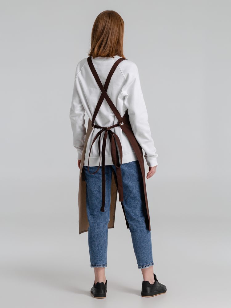 Фартук с длинными регулируемыми лямками и удобными карманами.