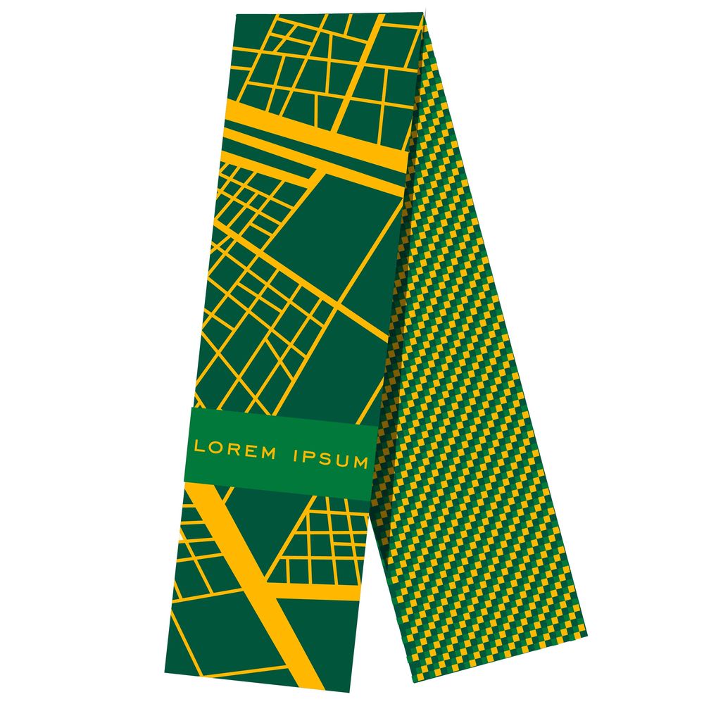 Шарф с вывязанным логотипом и индивидуальным рисунком в фирменной цветовой гамме.