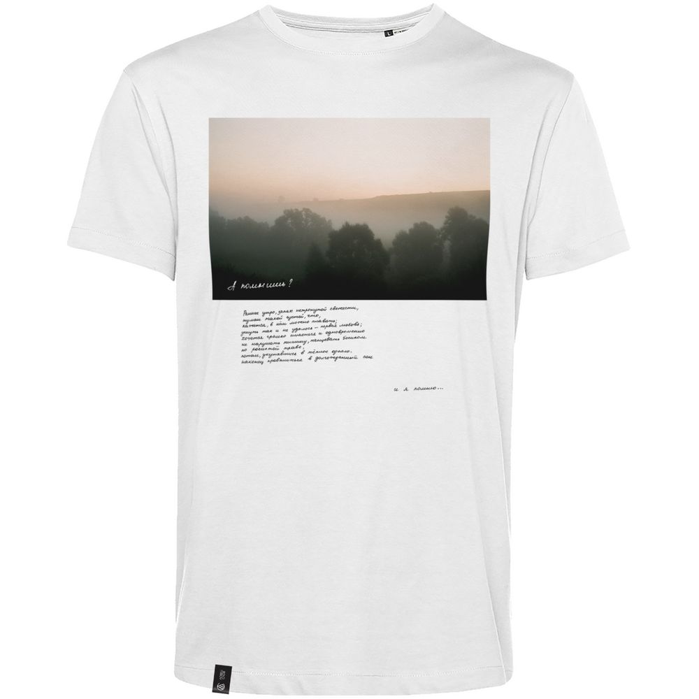 Бесшовная футболка из органического гребенного хлопка. Круглый вырез отделан резинкой.