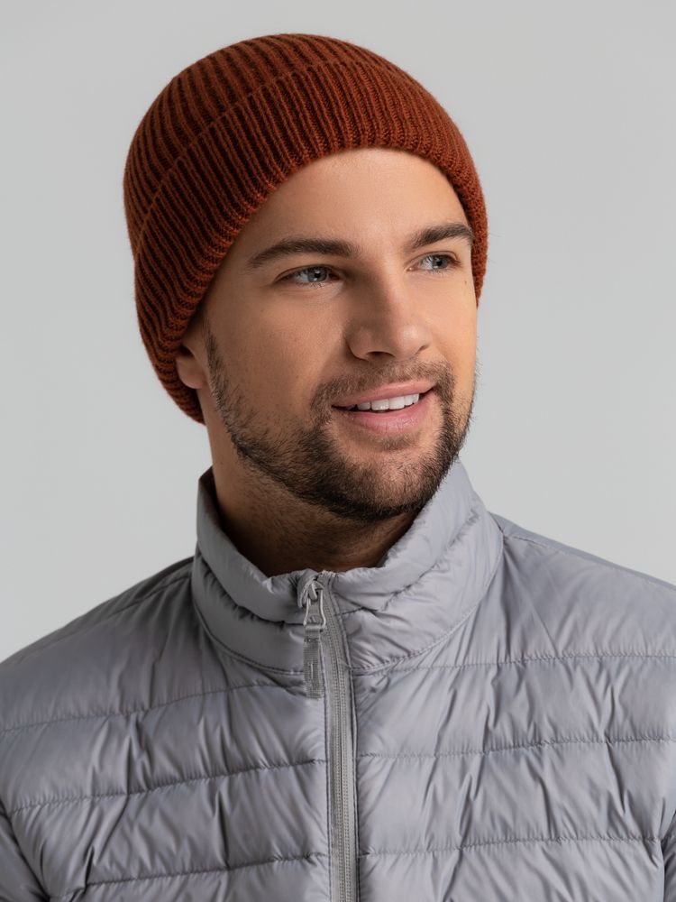 Однослойная шапка фактурной вязки с отворотом.