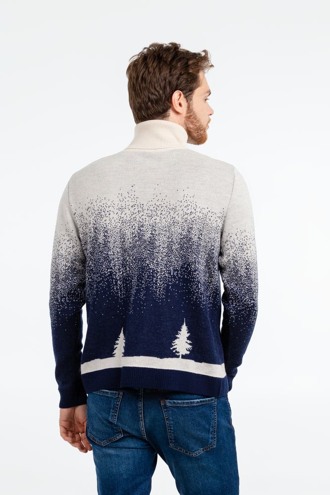 Модель: свитер жаккардовой вязки, плотный и теплый, 2–3 цвета нитей, гладкая поверхность.