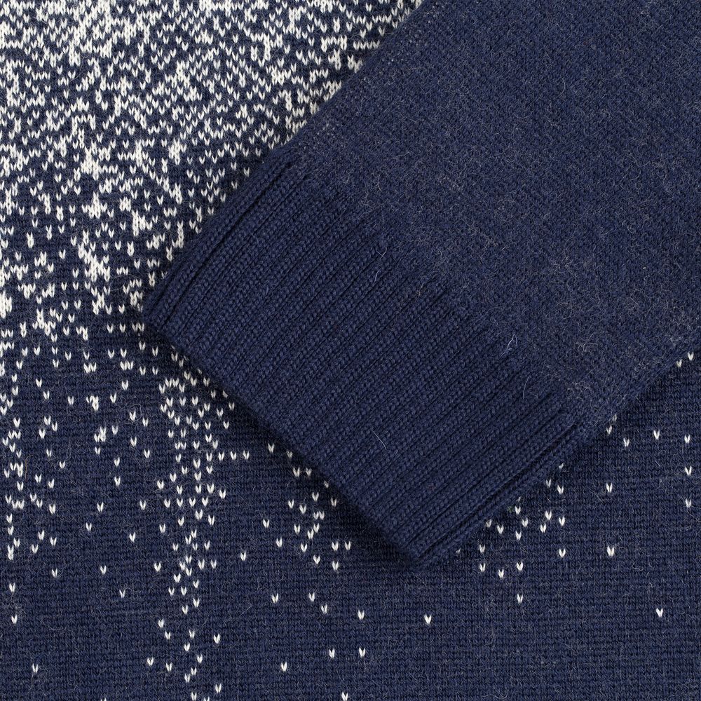 Свитер с вывязанным логотипом и индивидуальным рисунком в фирменной цветовой гамме.