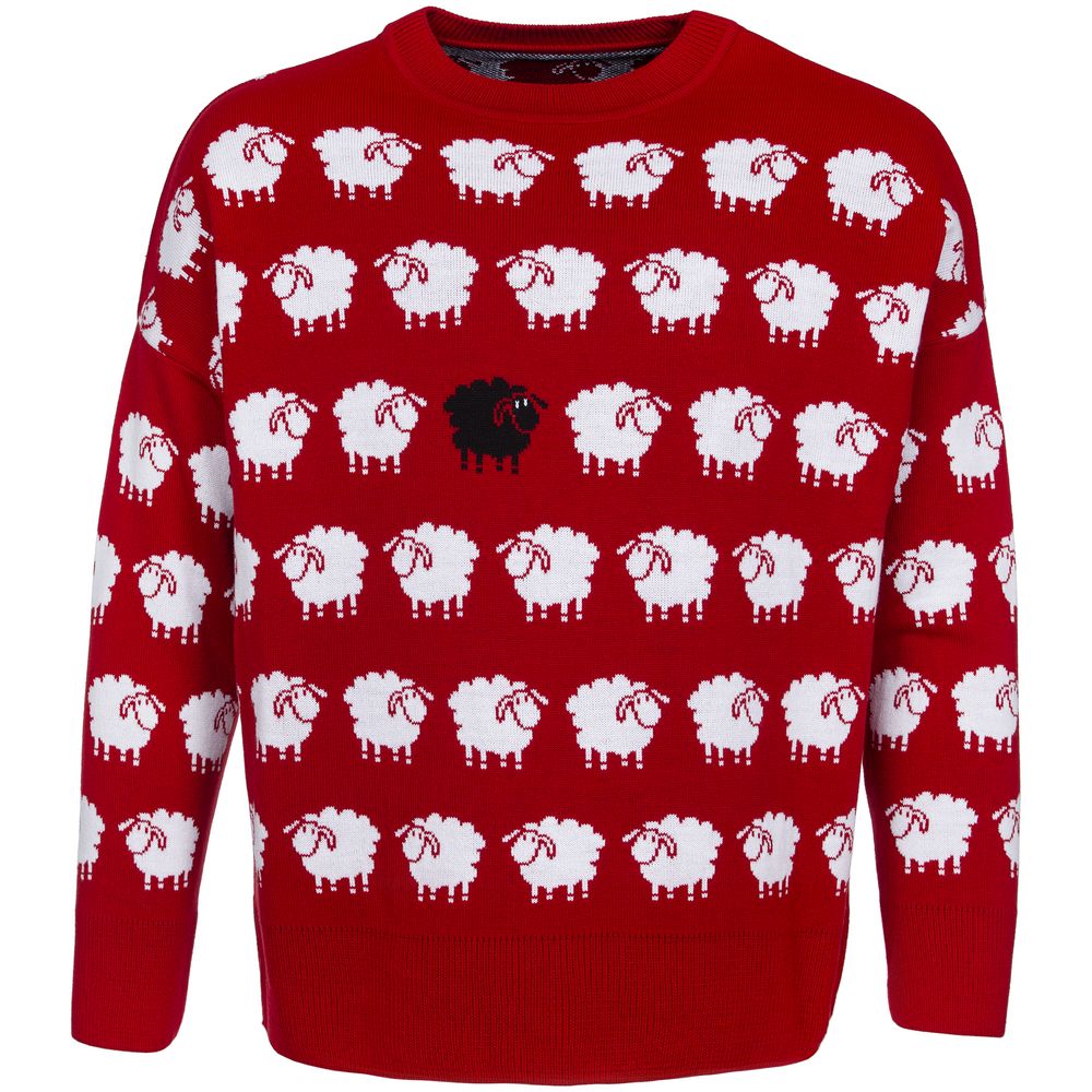 Свитер унисекс с вывязанным логотипом и индивидуальным рисунком в фирменной цветовой гамме.