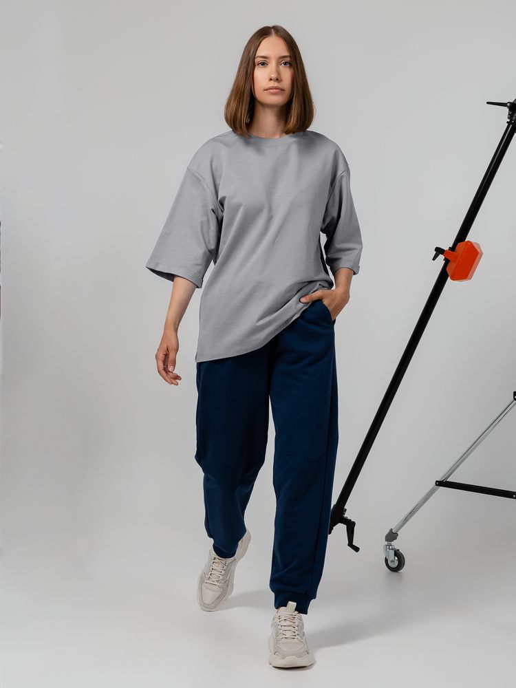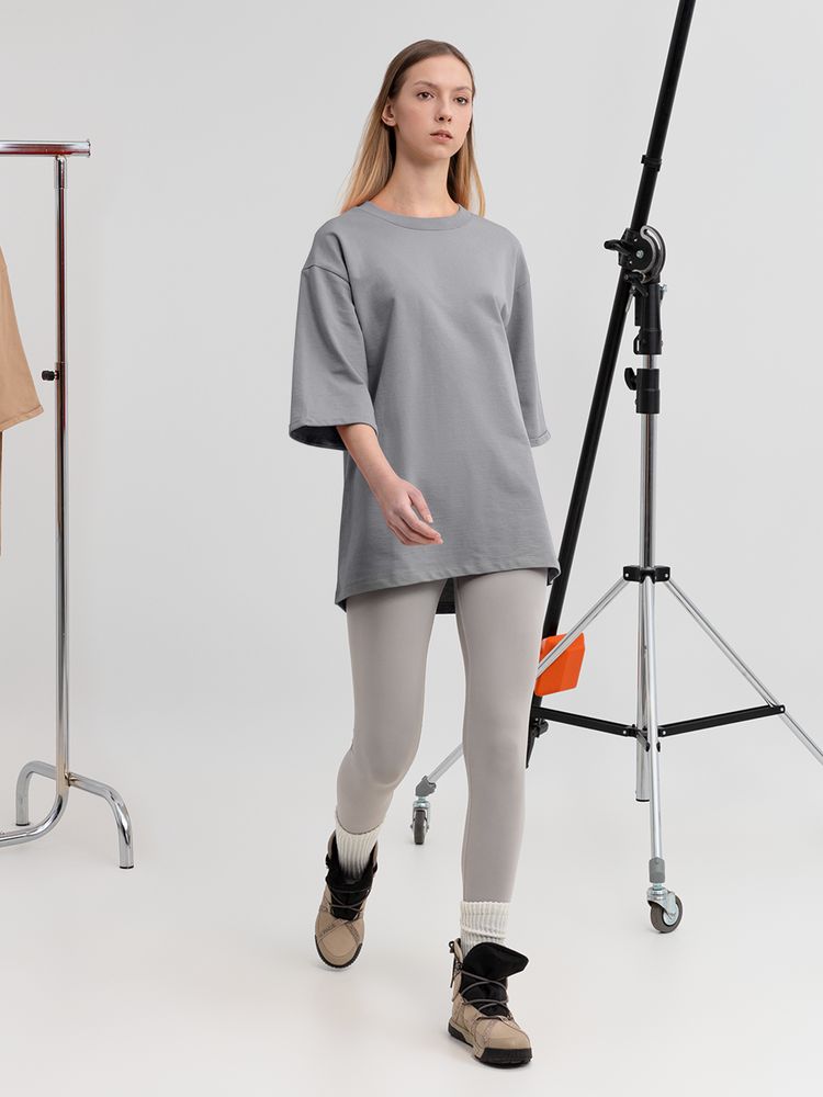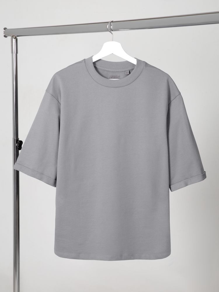 Футболка унисекс свободного кроя со спущенным плечом и смещенными плечевыми швами.