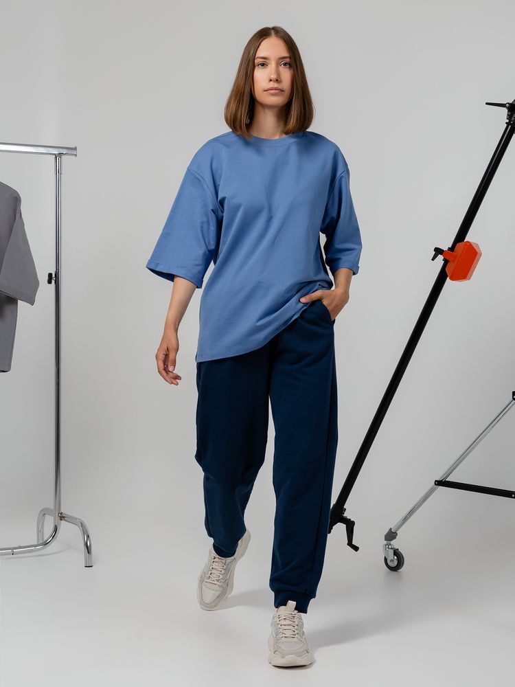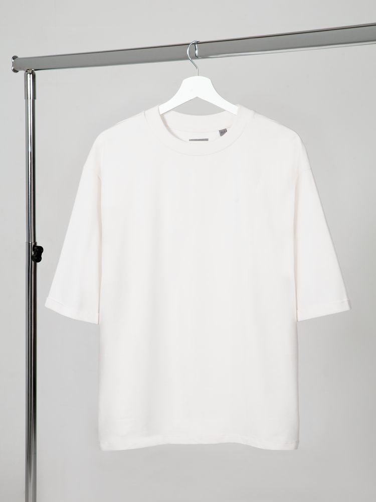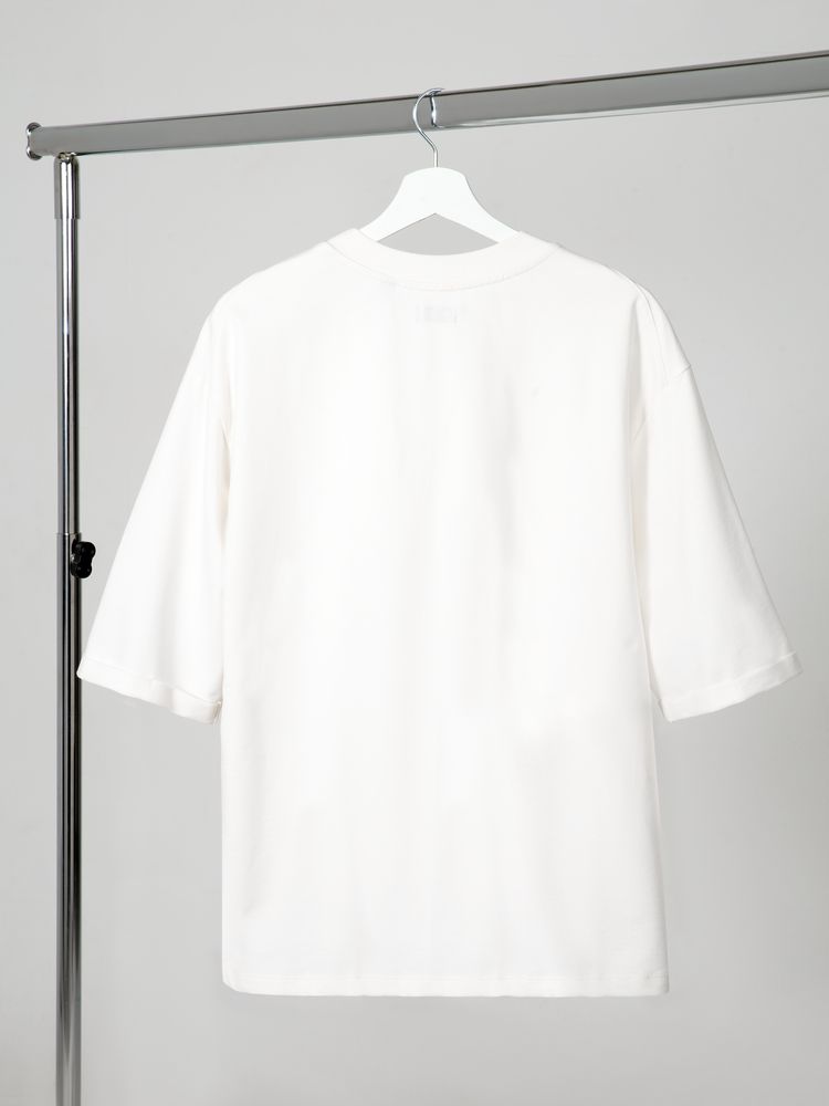 Футболка унисекс свободного кроя со спущенным плечом и смещенными плечевыми швами.