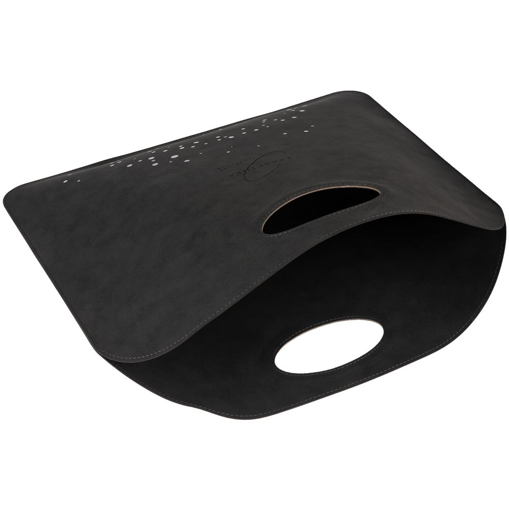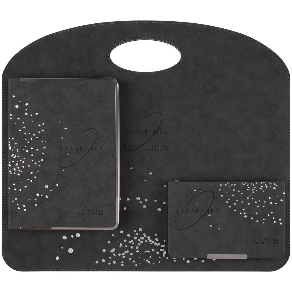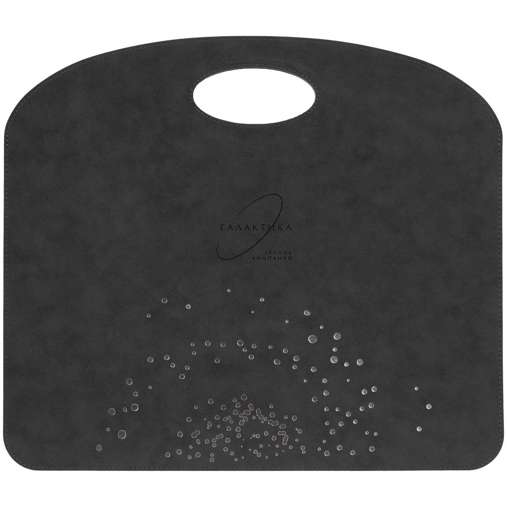 Данный вариант сумки-папки выполнен из материала Nubuck, темно-серый ЕЕ, и дополнен слепым (до 50 см.кв.) и фольгированным тиснением (от 100 см.кв.).