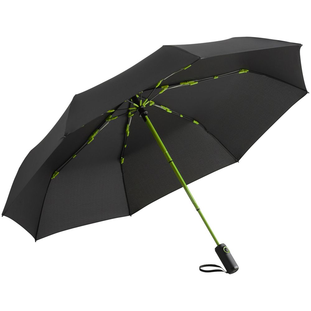 Компактный зонт-автомат AOC Colorline снабжен системой WindProof, благодаря которой способен выдержать сильные порывы ветра. Купол зонта произведен из сертифицированного OEKO-TEX полиэфирного эпонжа из переработанного пластика, окрашенного по технологии waterSAVE. Новый процесс окрашивания — непосредственно в процессе производства материала — снижает потребление электричества, воды и химически активных веществ. Зонт привлекает внимание цветными вставками на спицах и и цветным штоком.