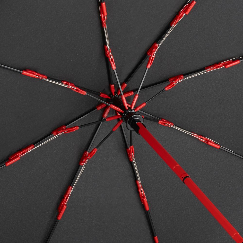 Компактный зонт-автомат AOC Colorline снабжен системой WindProof, благодаря которой способен выдержать сильные порывы ветра. Купол зонта произведен из сертифицированного OEKO-TEX полиэфирного эпонжа из переработанного пластика, окрашенного по технологии waterSAVE. Новый процесс окрашивания — непосредственно в процессе производства материала — снижает потребление электричества, воды и химически активных веществ. Зонт привлекает внимание цветными вставками на спицах и и цветным штоком.