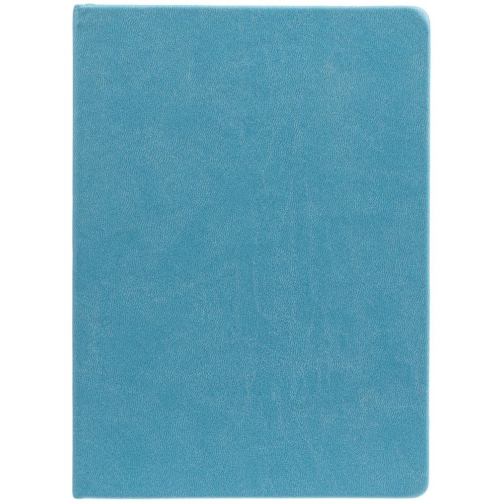 Ежедневник с твердой обложкой. Выполнен из материала Latte, голубой, дополнен ляссе в цвет обложки.